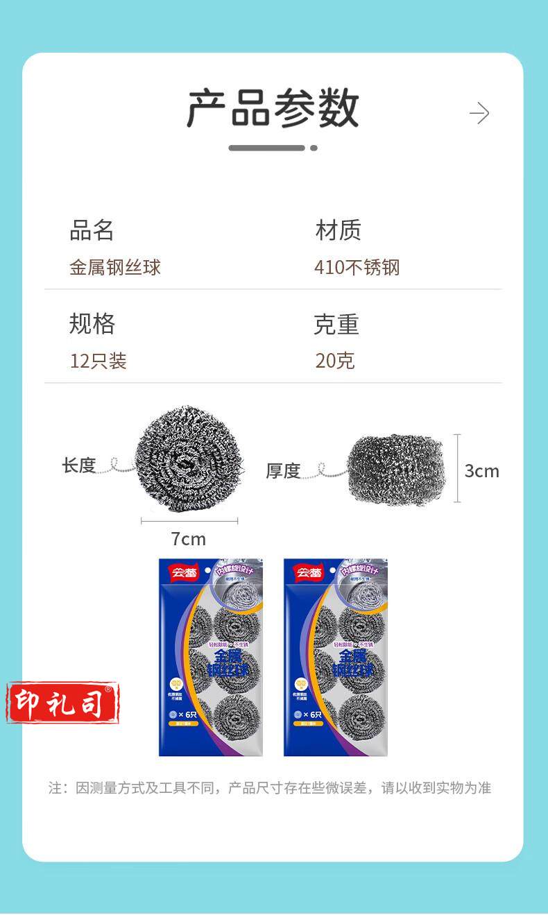 云蕾钢丝球12个装厨房洗碗去油污不易掉屑刷子刷锅清洁球高克重-钢丝球12只