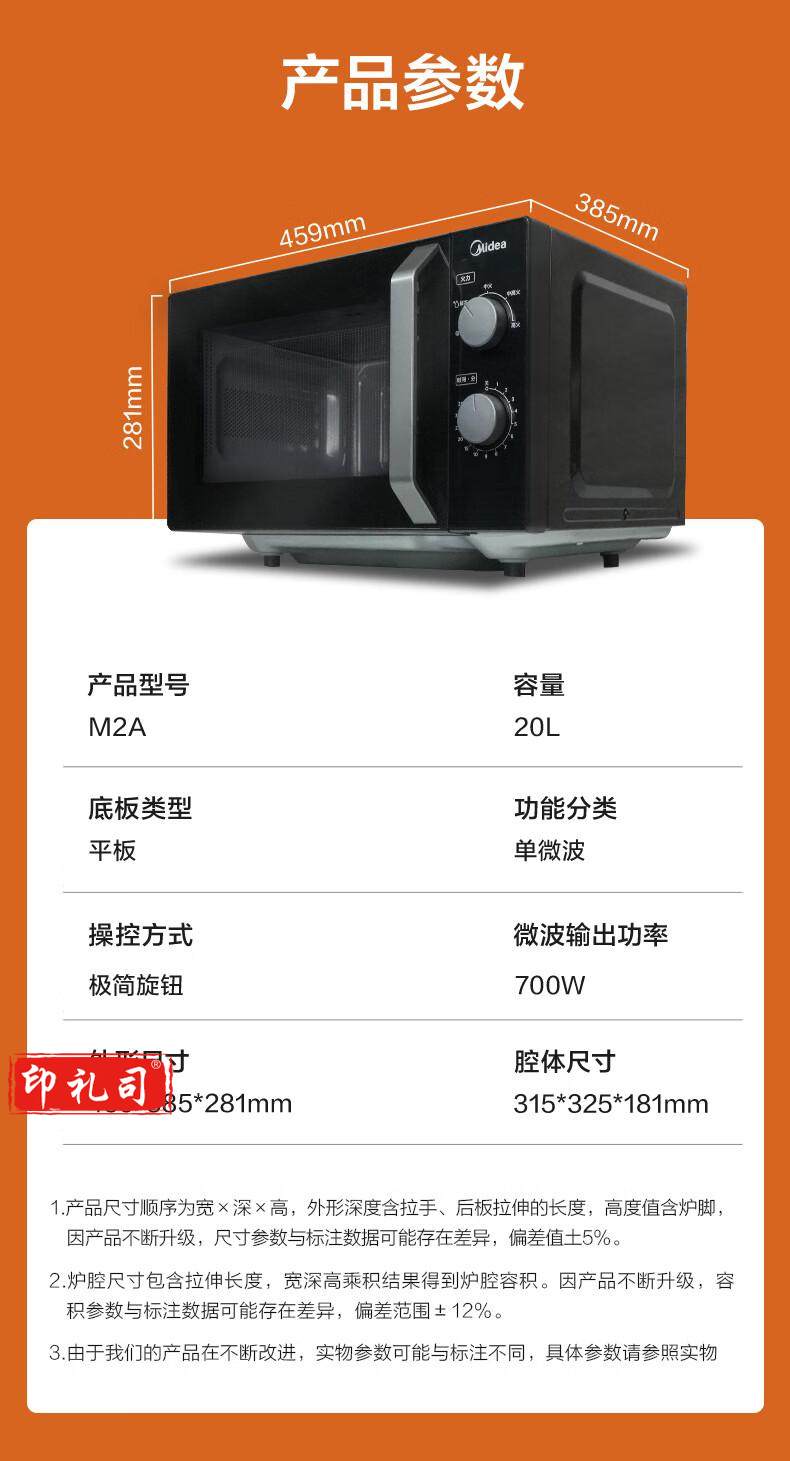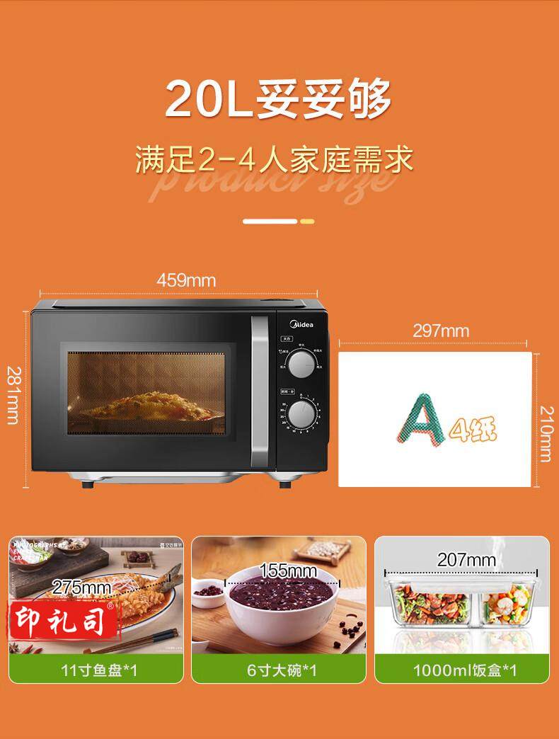 美的(Midea)微波炉2023年升级款 家用小型20升 平板式易清洁 高效速热 杀菌除味 快捷双旋钮 M2A默认规格