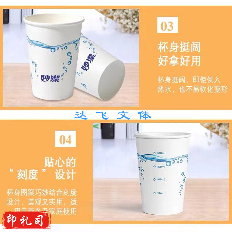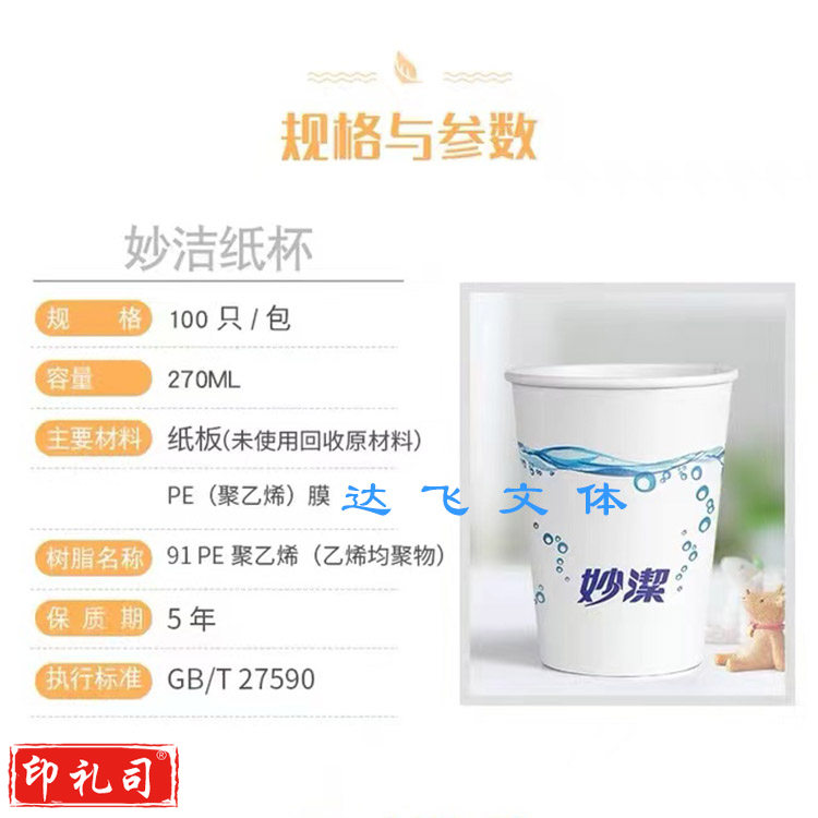 妙洁一次性纸杯270ml大号挺厚加厚不易渗漏水杯茶杯 50个/包默认规格