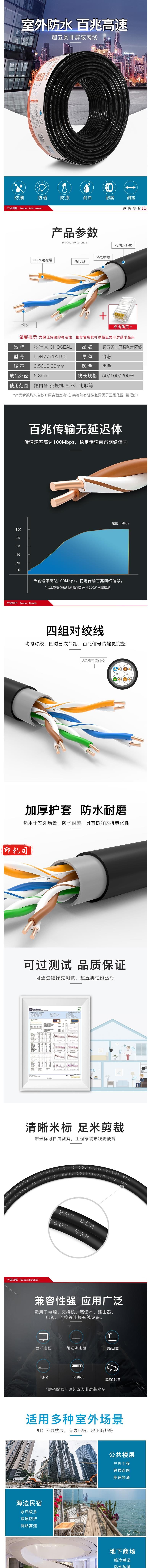 秋叶原(CHOSEAL)超五类网线 非屏蔽 防水抗晒耐寒 高速 国标纯铜 室外专用网线 黑色 100米 LDN7771AT100