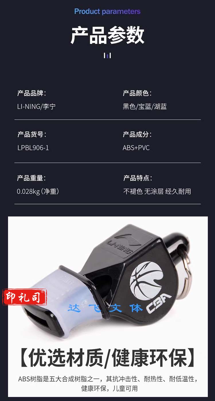 李宁LI-NING口哨无核篮足排球体育老师专用户外高音裁判哨LPBL906
