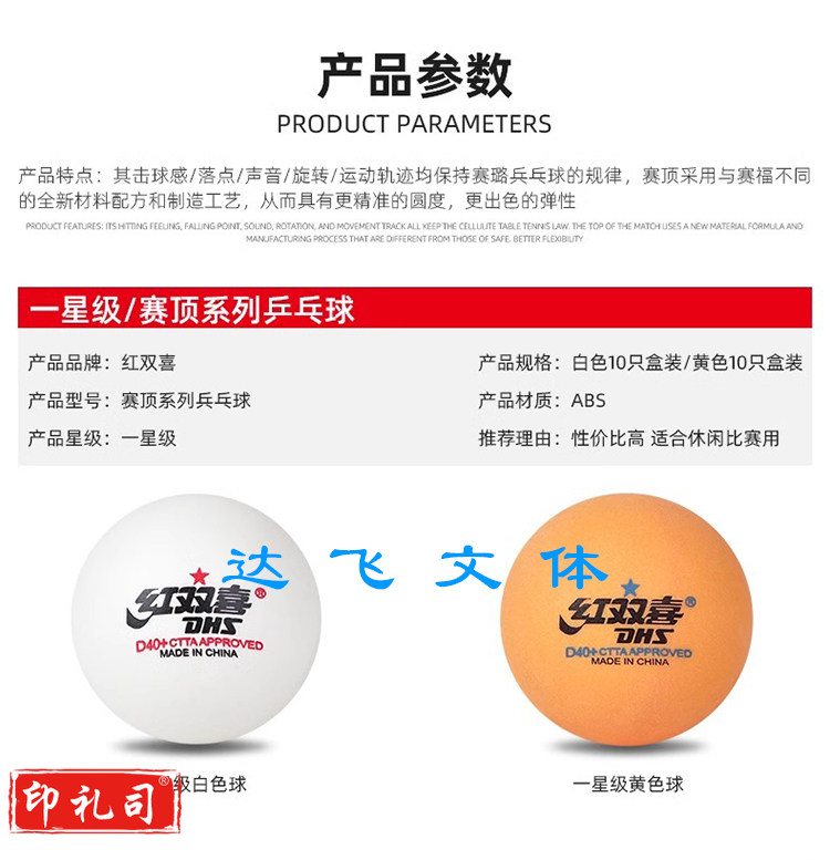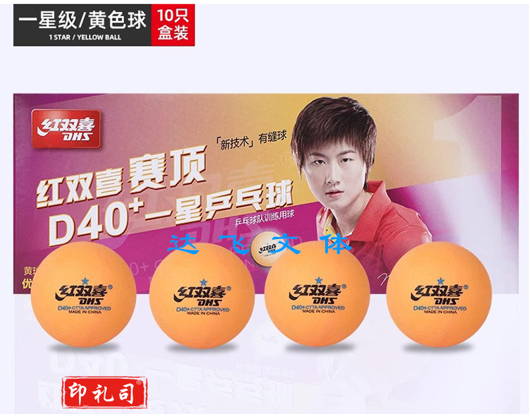 红双喜赛顶D40+一星级乒乓球新技术新材料有缝乒乓球队训练用球(有白色和黄色两种颜色可选择)默认规格