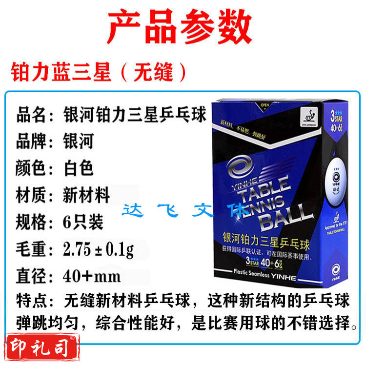 银河乒乓球三星级无缝40+高弹新材料铂力3星40+乒乓球比赛用球(6个装)默认规格