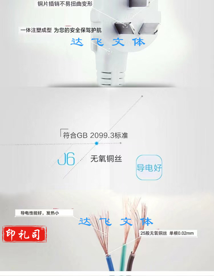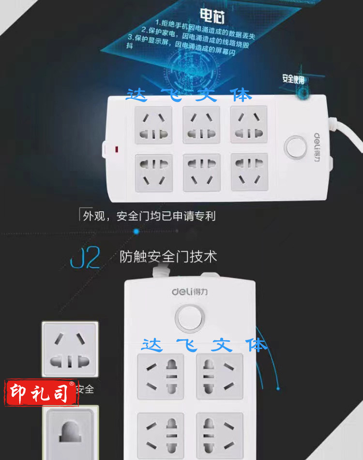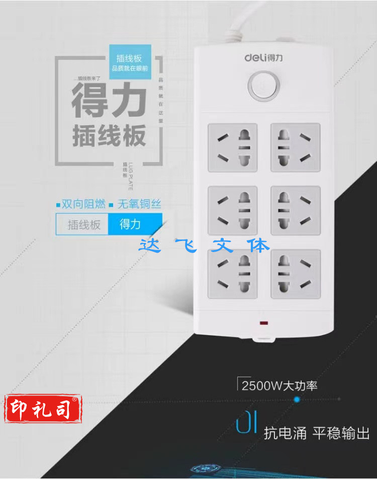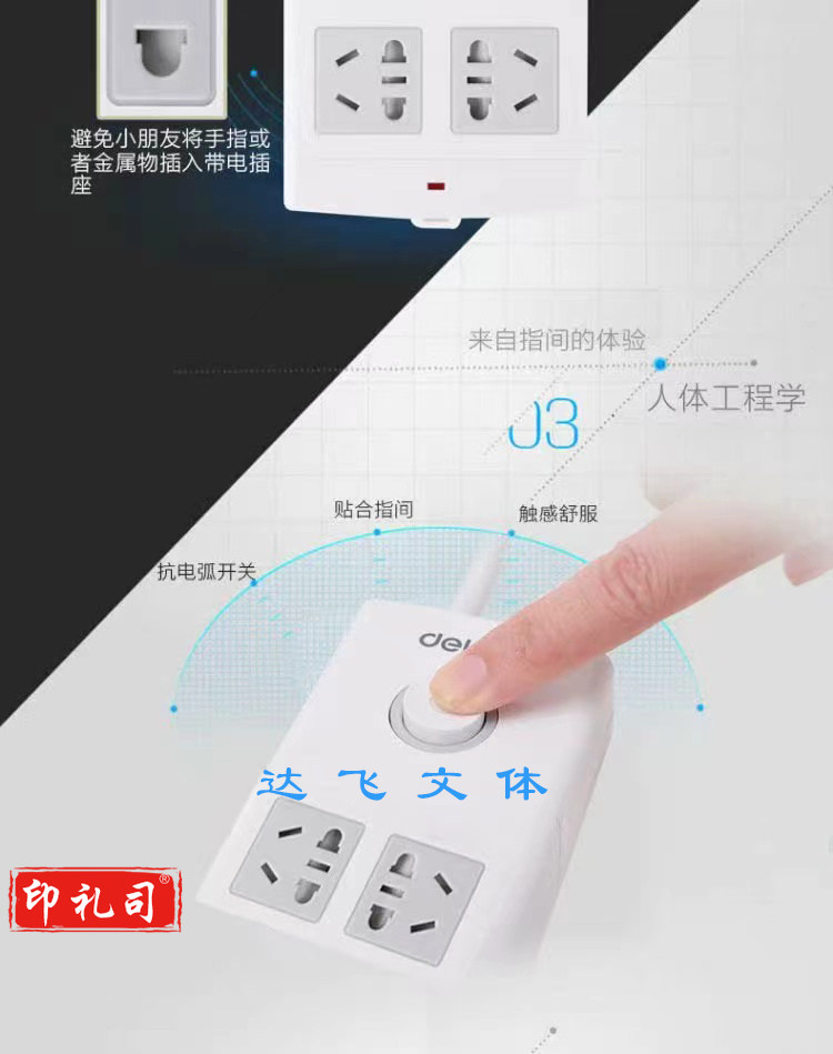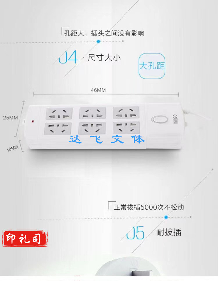得力(deli)新国标 接线板 总控开关 儿童保护门 6组合孔3米 18205插座PVC袋装(白)