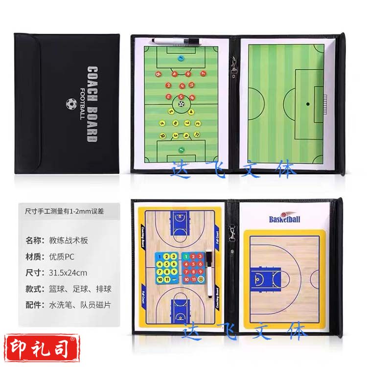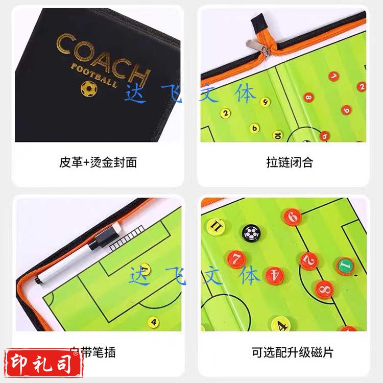 足球战术板折叠式足球教练板 皮革折叠式示教板 磁性带笔擦板指挥