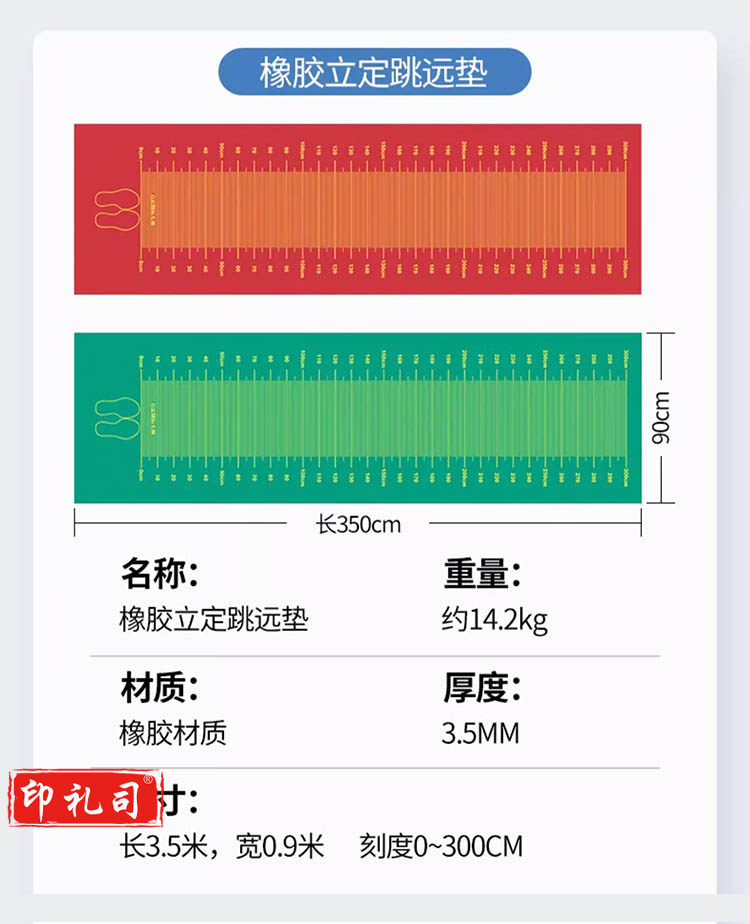 中考立定跳远垫 测试仪垫子3.5米加厚防滑立定跳远橡胶垫 红色 绿色颜色随机默认规格