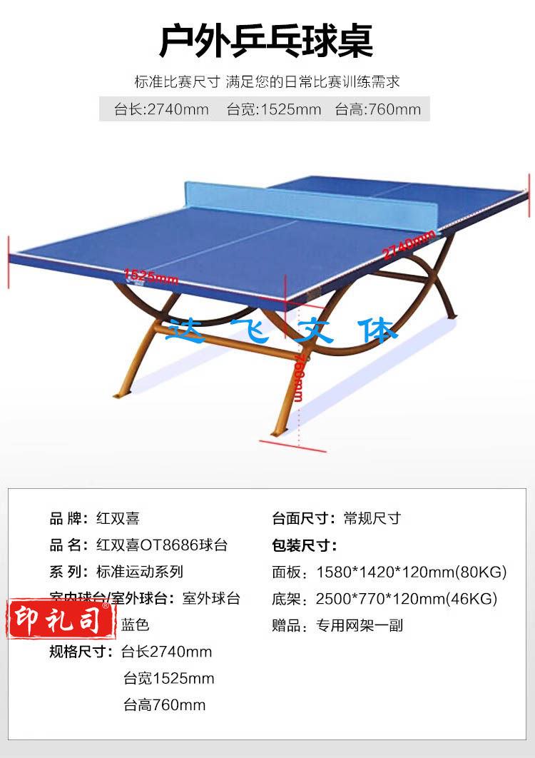 红双喜室外乒乓球台OT8686 防雨防水防晒户外乒乓球桌标准案子