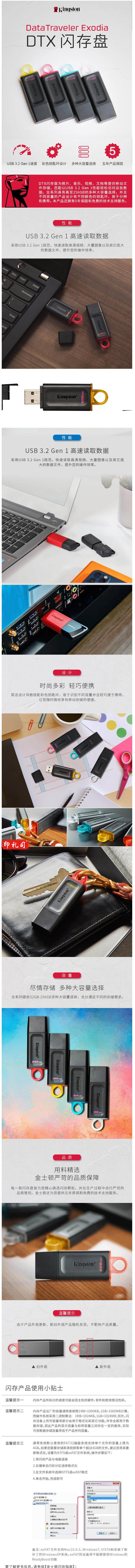 金士顿256GB USB3.2 Gen 1 U盘 DTX 时尚设计 轻巧便携