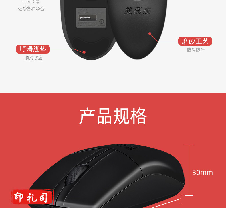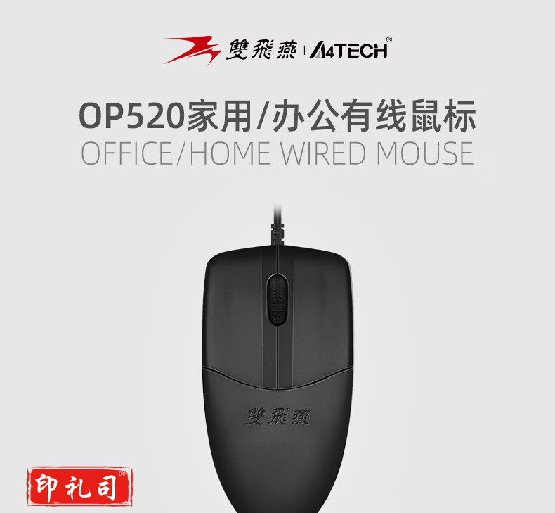 双飞燕(A4TECH) OP-520NU 鼠标 有线鼠标 办公鼠标 便携鼠标 对称鼠标 黑色