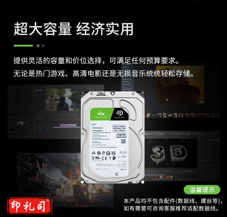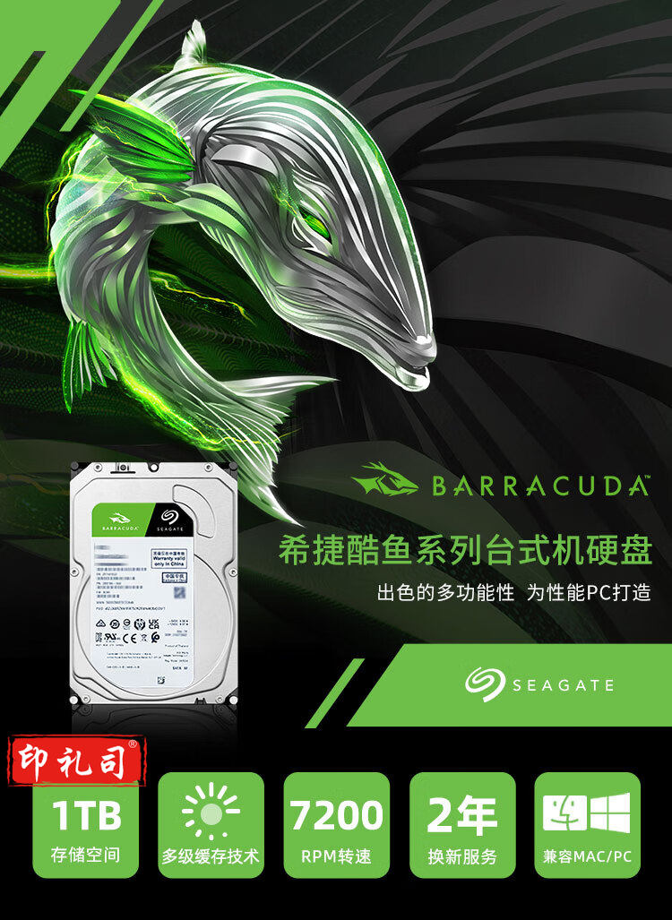 希捷(Seagate)台式机硬盘 1TB 7200转 256MB SATA 机械硬盘 希捷酷鱼BarraCuda系列(ST1000DM014)