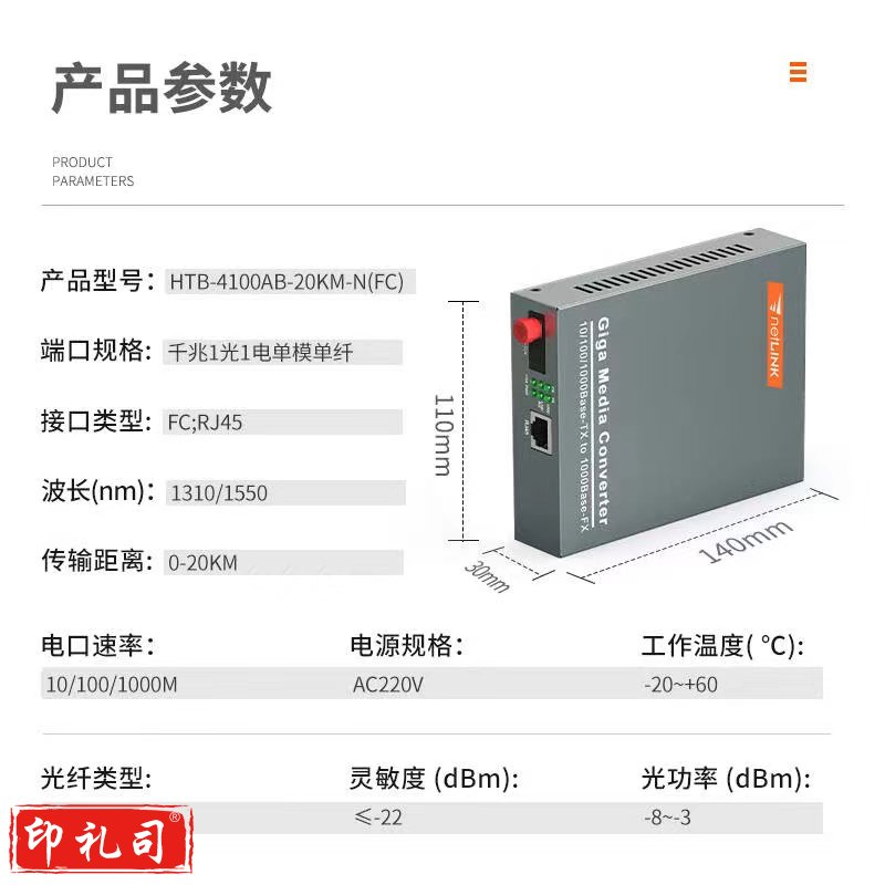 netLINK 光纤收发器 千兆单模单纤光电转换器 HTB-4100AB-20KM-N 内电SC 一对