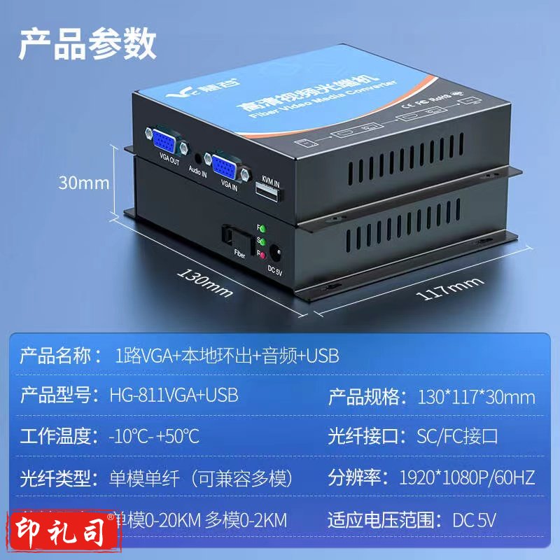 慧谷 VGA光端机 高清视频光端机 VGA光纤延长线 VGA转光纤收发器 1对 1路VGA+音频+本地还出+USB