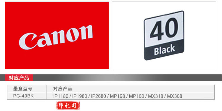 佳能(Canon)PG-40Black 黑色墨盒(适用iP1180、iP1980、iP2680、MP198)