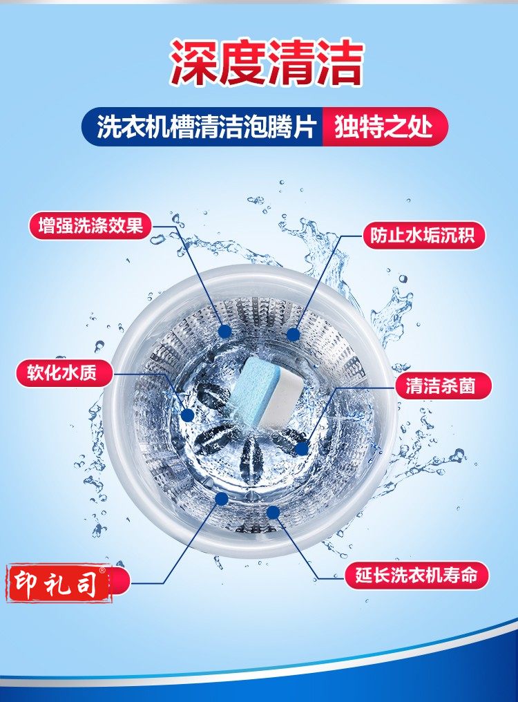 绿伞洗衣机清洗剂泡腾片20g*12块杀菌率99.9%快速去除污渍全面清洁洗衣机内筒 1盒