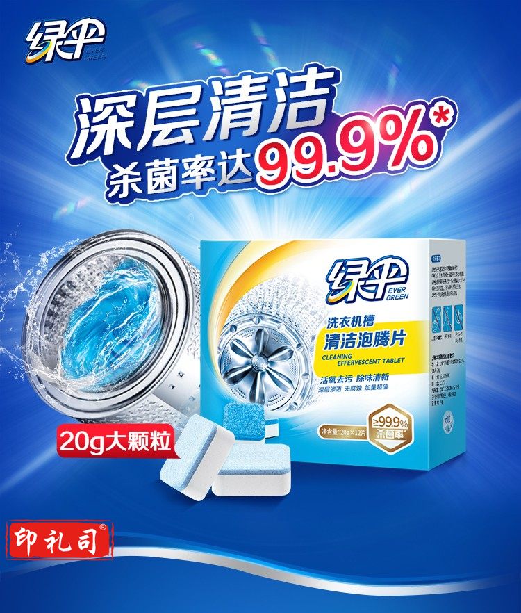 绿伞洗衣机清洗剂泡腾片20g*12块杀菌率99.9%快速去除污渍全面清洁洗衣机内筒 1盒