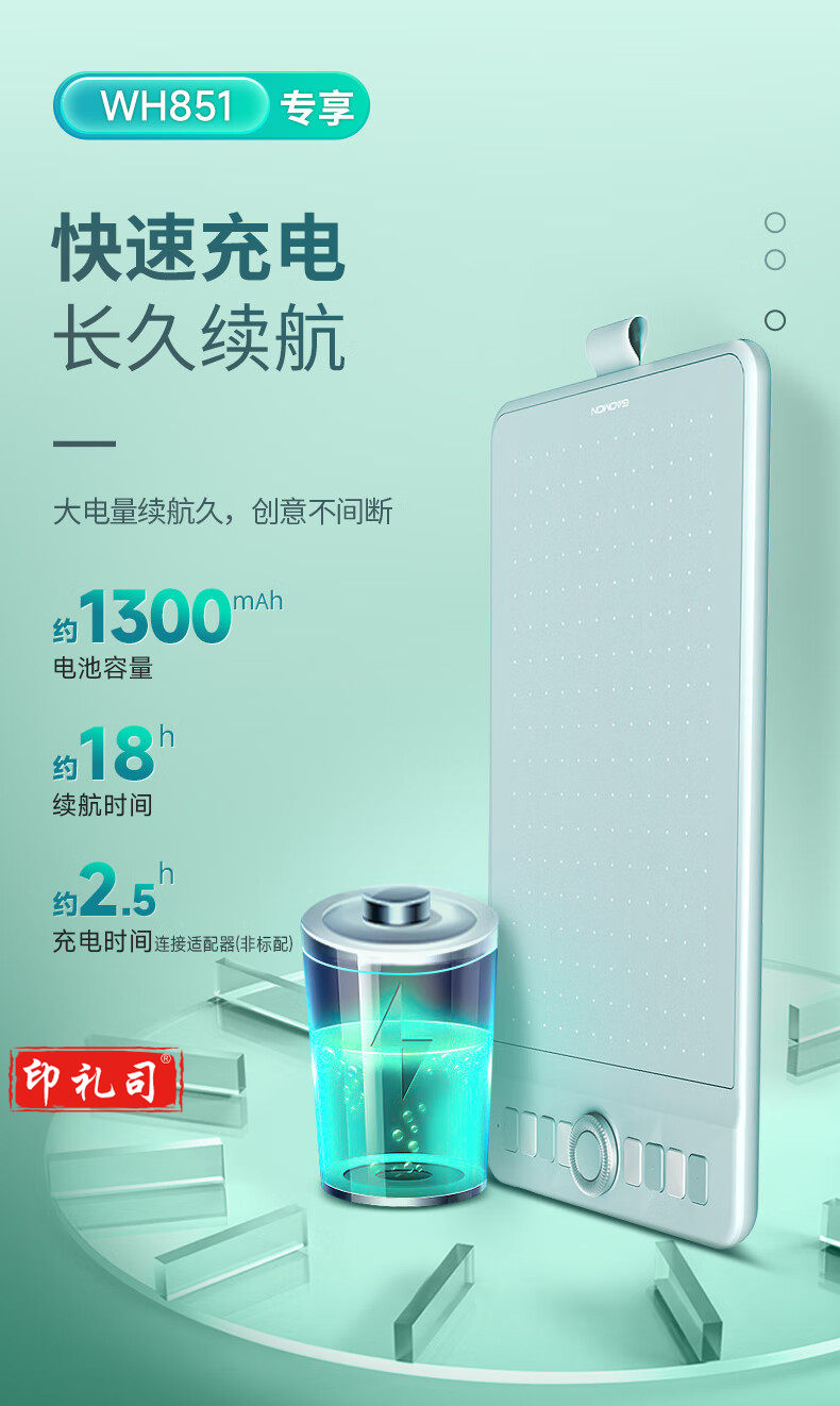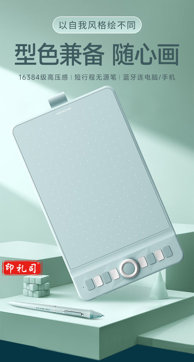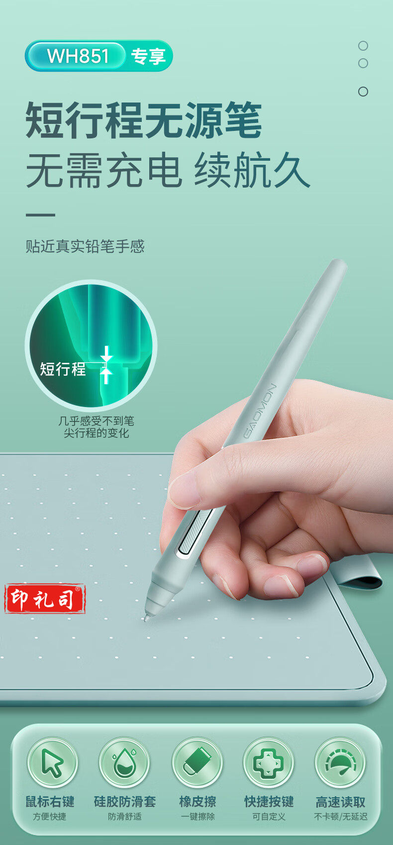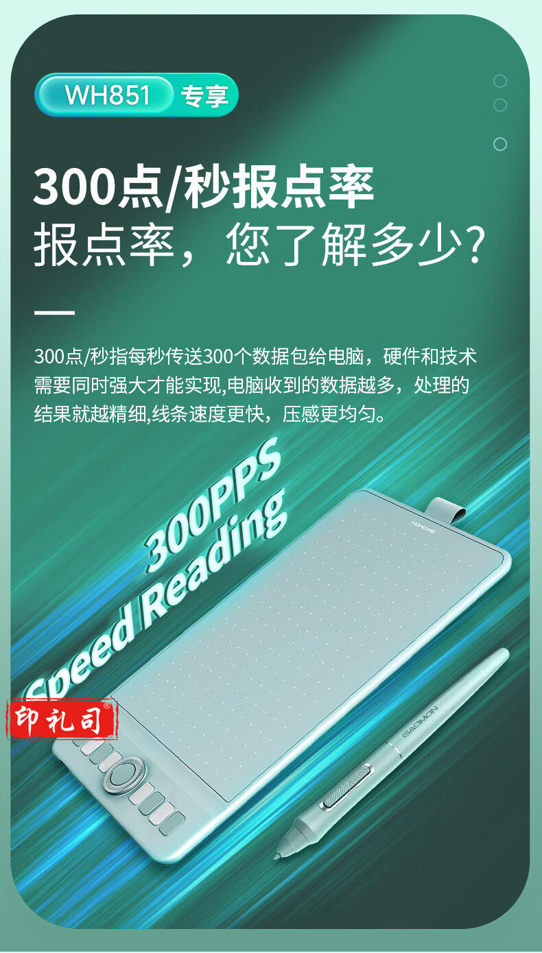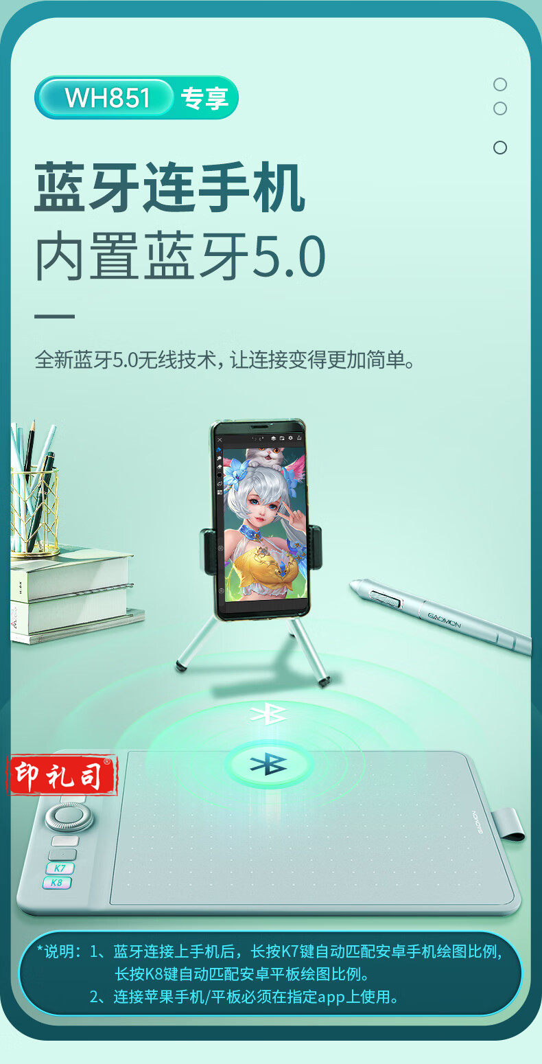 高漫(GAOMON)WH851 新款蓝牙无线手绘板 短程无源笔手写 16K级压感数位板 可连手机 清新绿