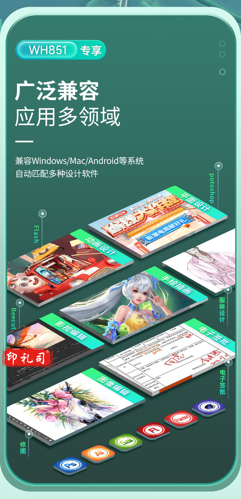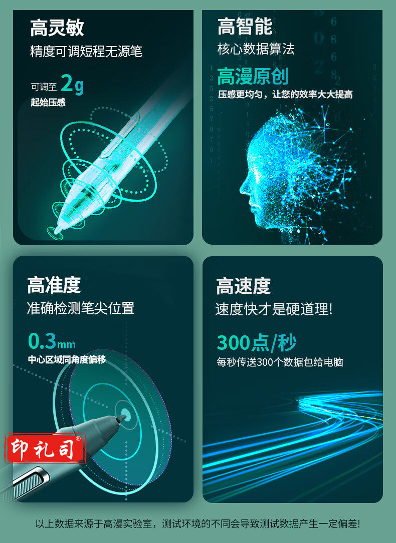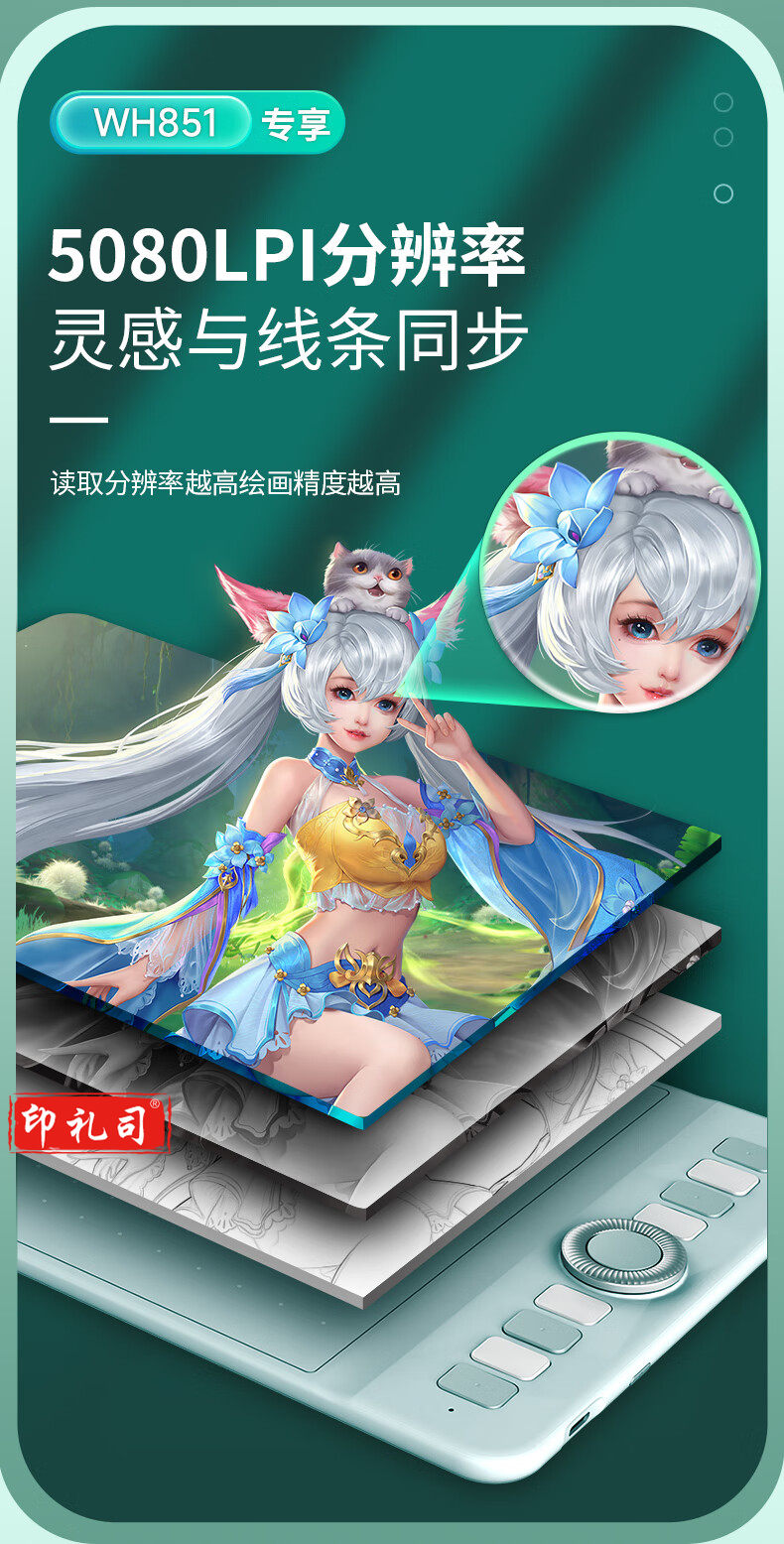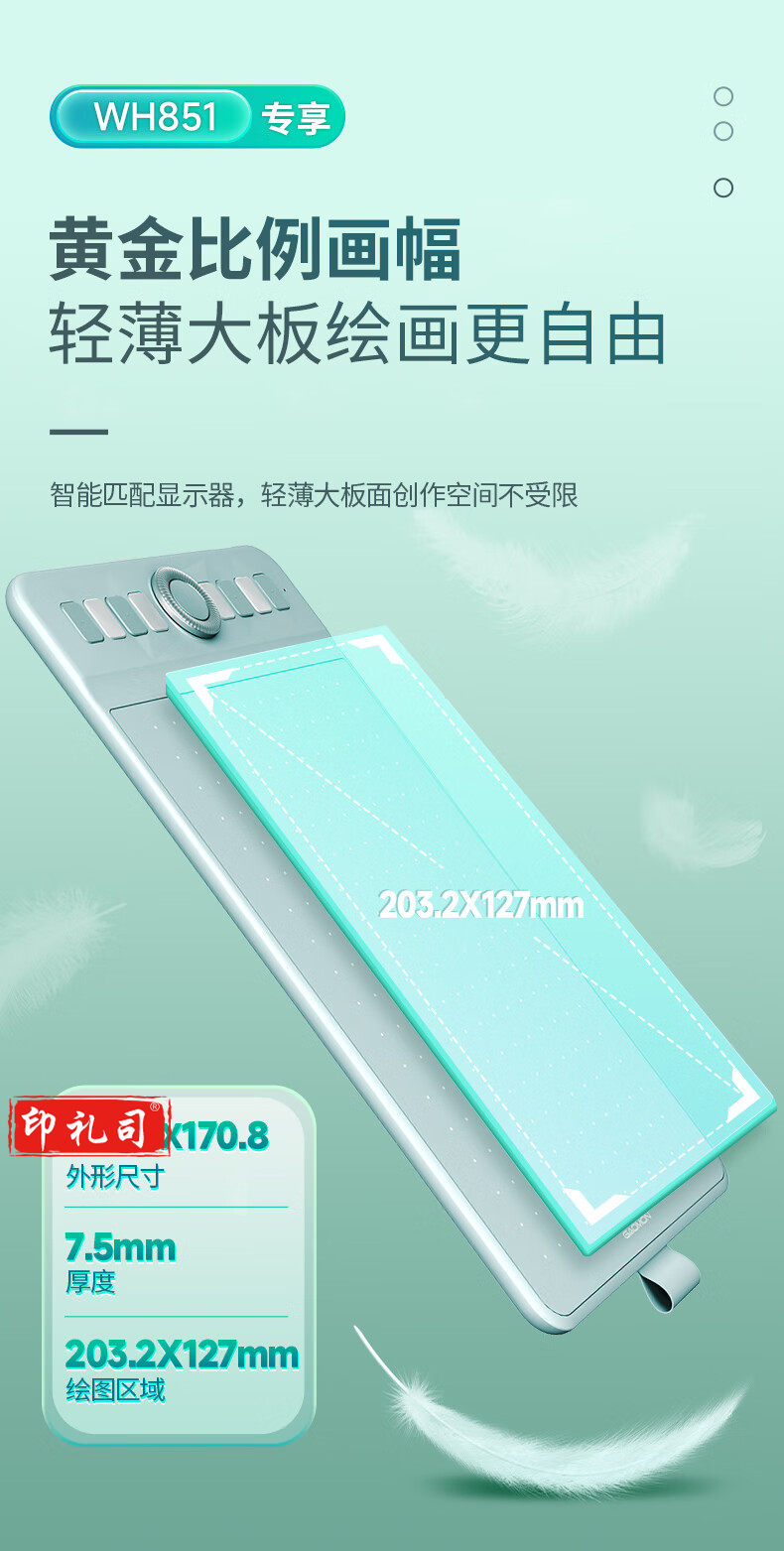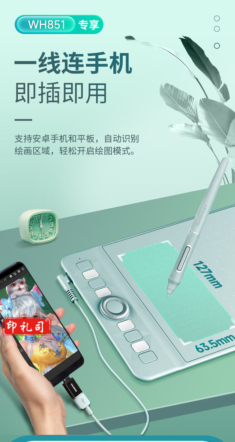 高漫(GAOMON)WH851 新款蓝牙无线手绘板 短程无源笔手写 16K级压感数位板 可连手机 清新绿