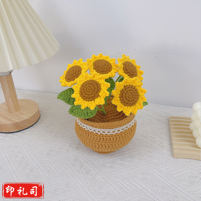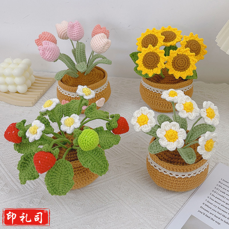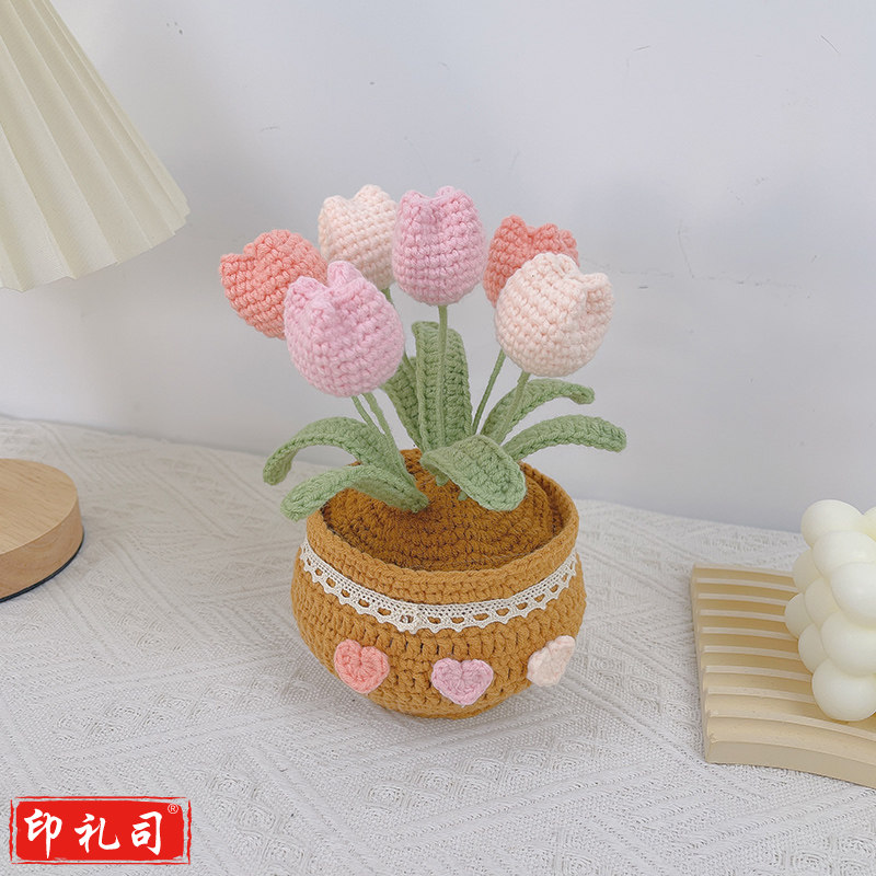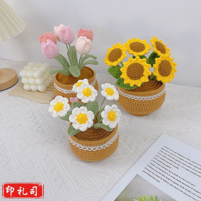 毛线 线花束材料包永生花手工编织ins郁金香小雏菊盆栽钩织自制摆件
