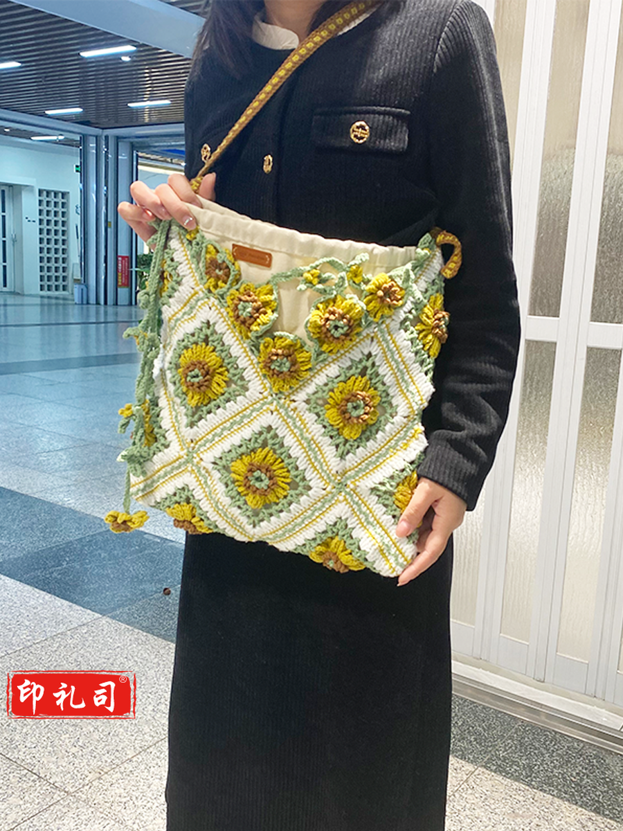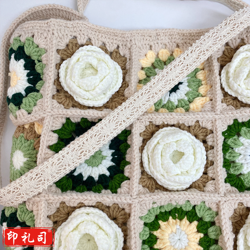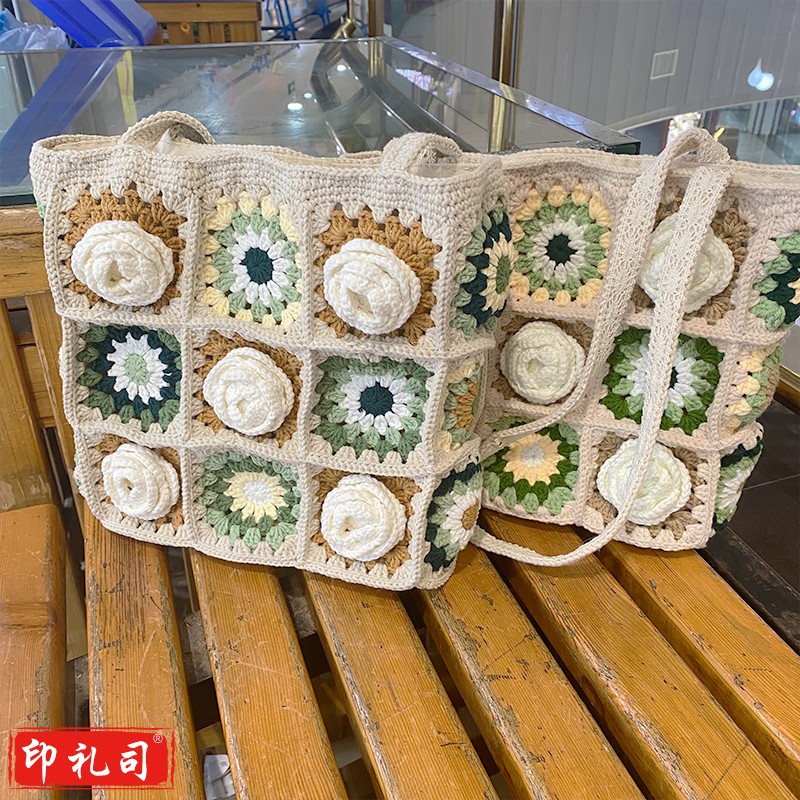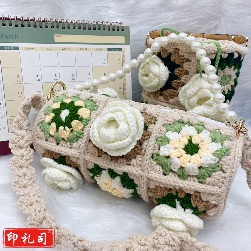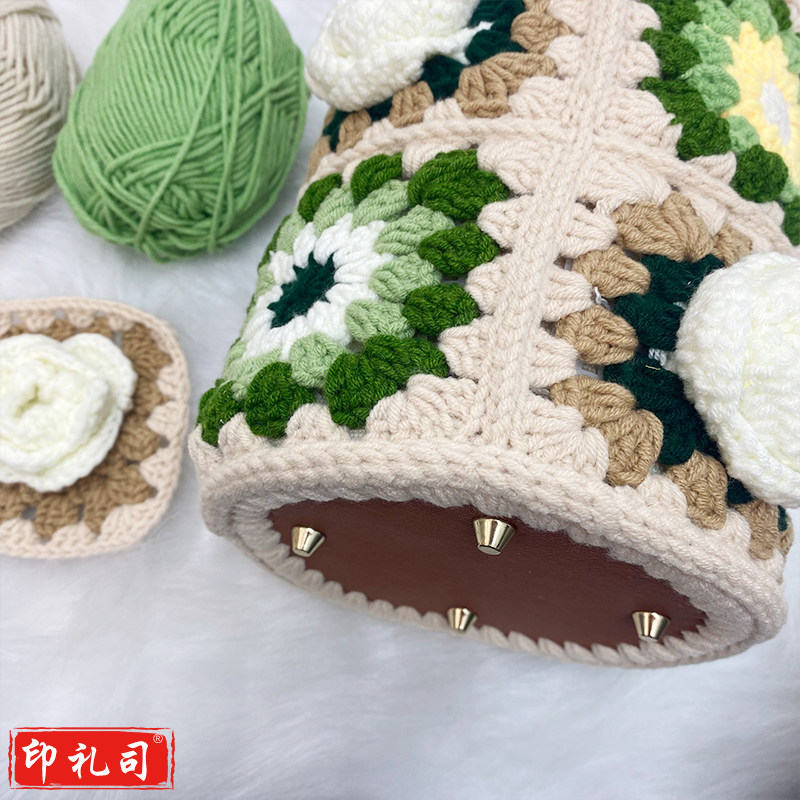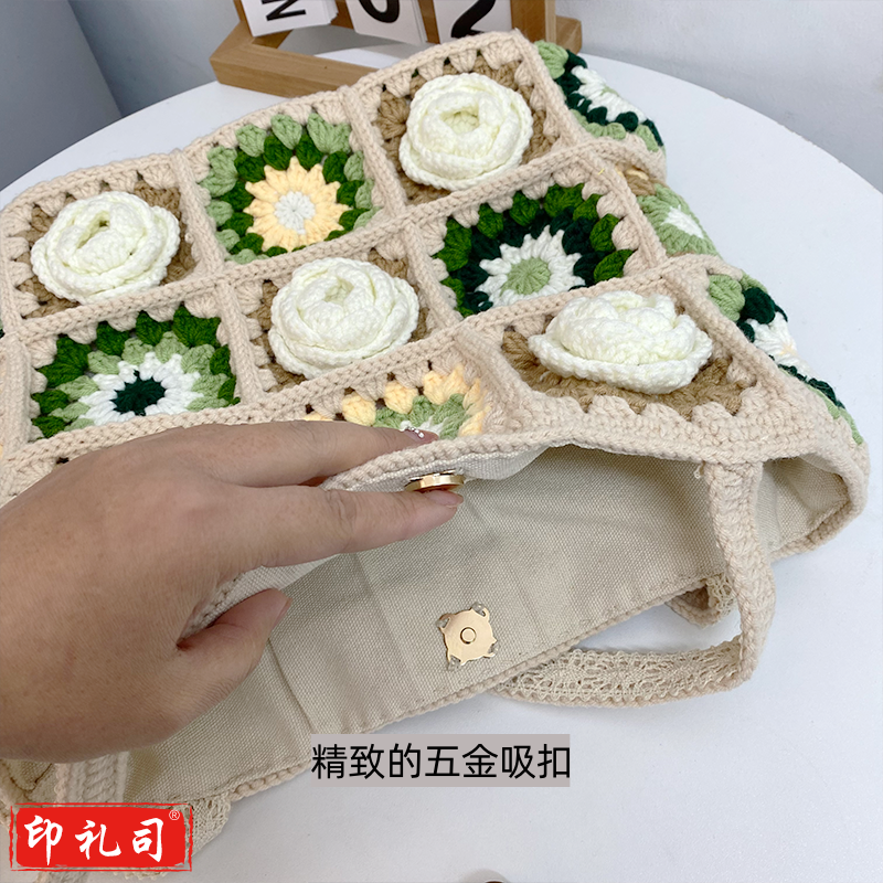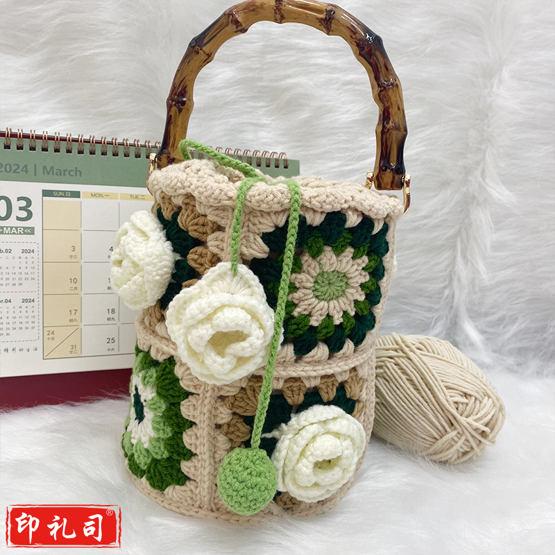 DIY祖母格材料包手工编织包山茶花水桶毛线包手提斜跨包成品自制