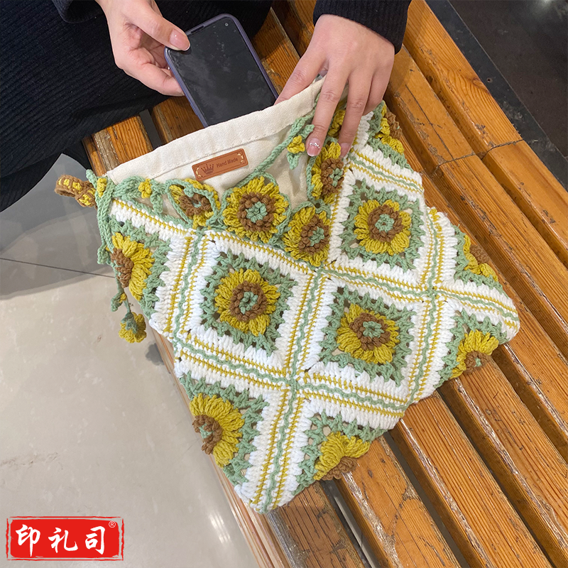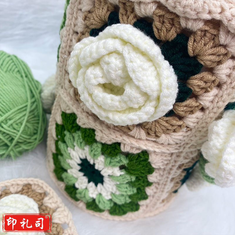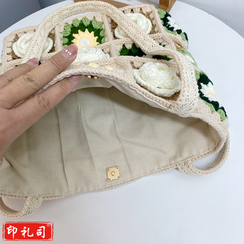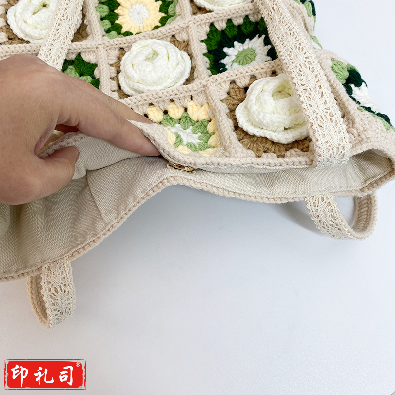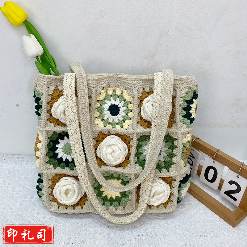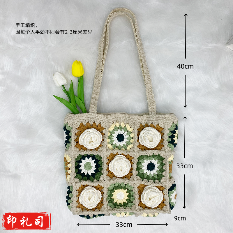 DIY祖母格材料包手工编织包山茶花水桶毛线包手提斜跨包成品自制