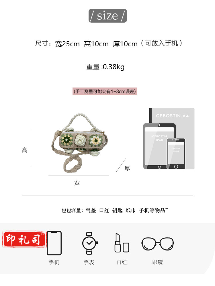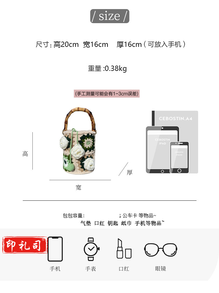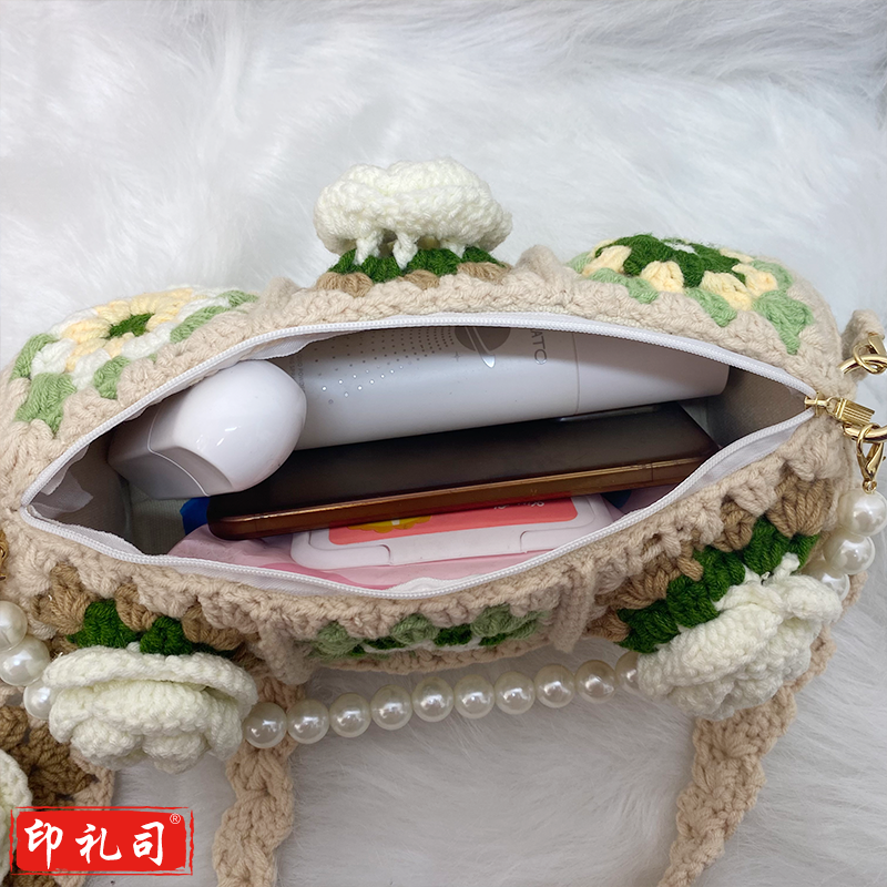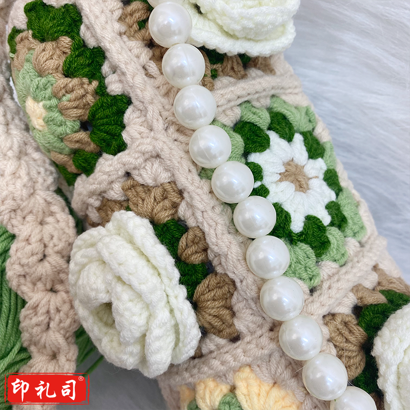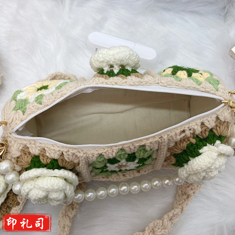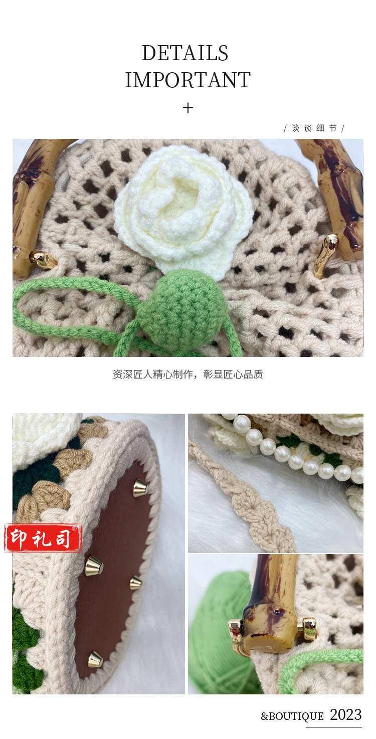 DIY祖母格材料包手工编织包山茶花水桶毛线包手提斜跨包成品自制