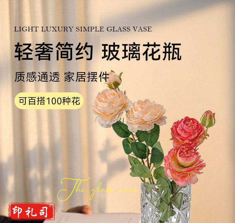 轻奢玻璃花瓶透明水培鲜花富贵竹ins风插花器皿客厅桌面装饰摆饰