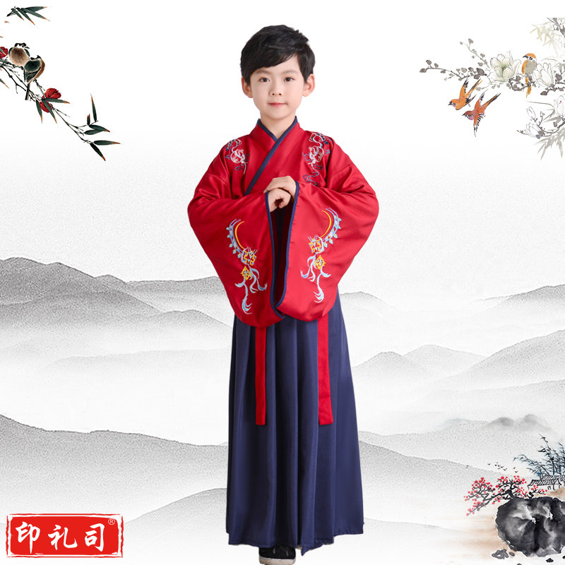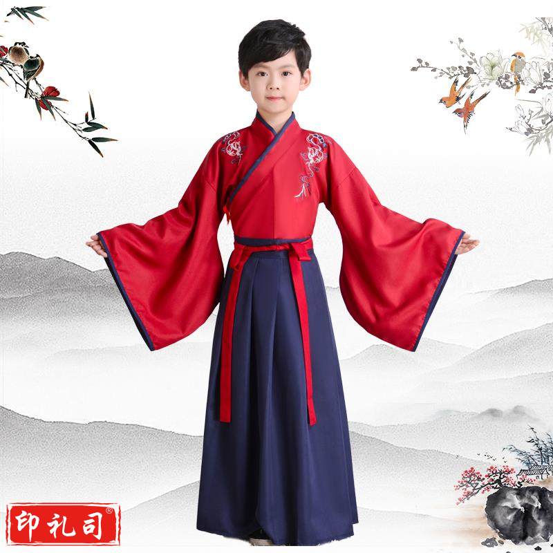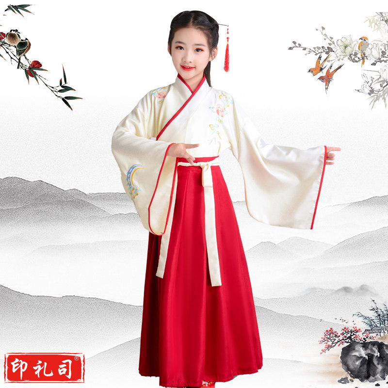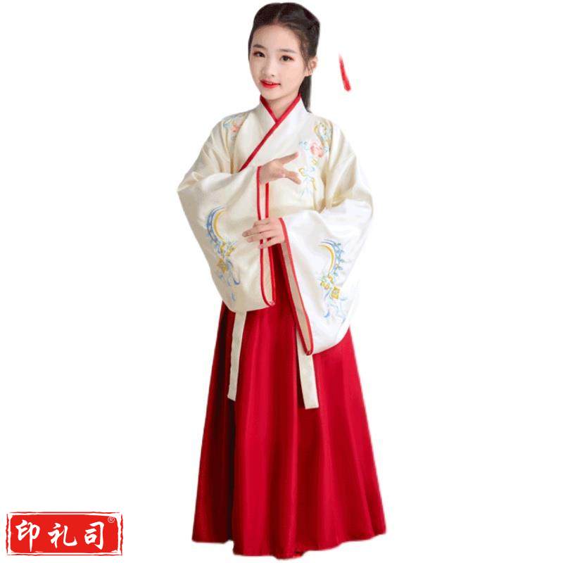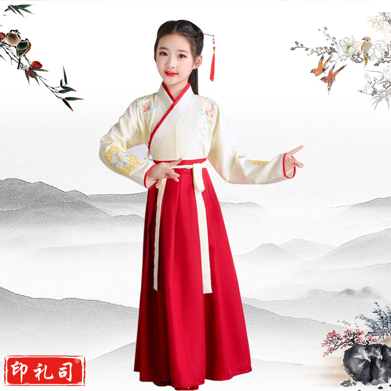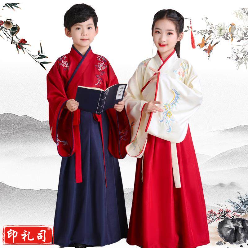 儿童刺绣汉服童心向党颂中华经典诵读传唱弟子规论语古诗词演出服