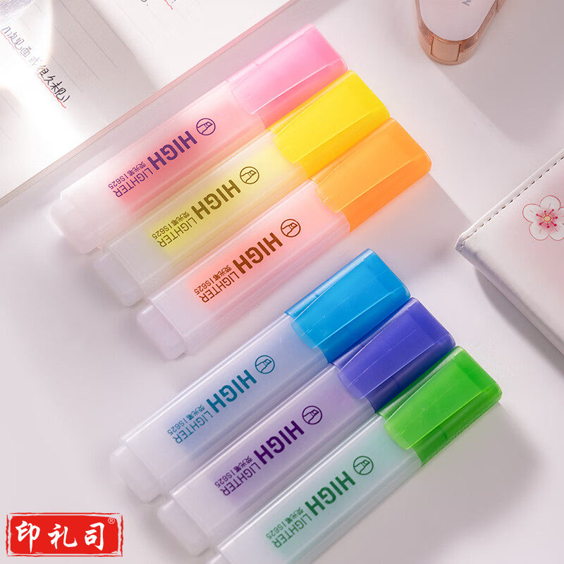 得力(deli)大容量扁杆荧光笔 学生考试复习划重点标记笔办公水性记号笔 手账涂鸦绘画可用 S625