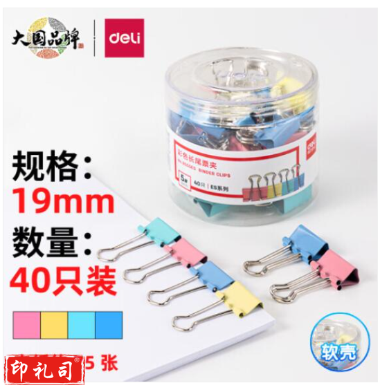 得力(deli)8555ES 40只19mm彩色长尾夹/票据夹(混色)(天津当地当天发货)