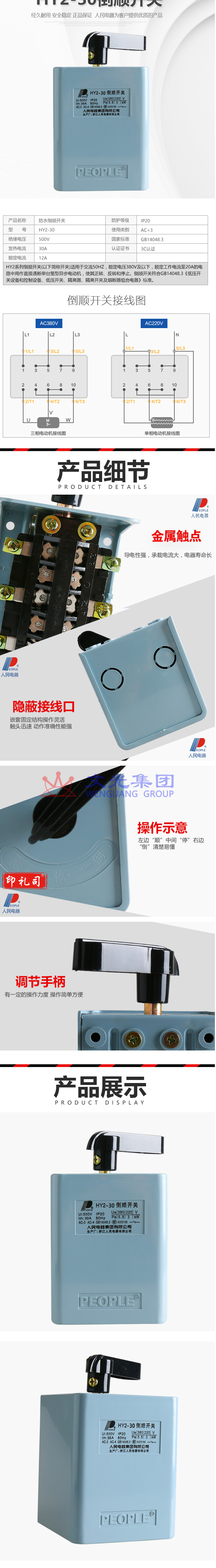 人民电器 HY2-30A 倒顺开关 30A 电机正反转可逆 380V