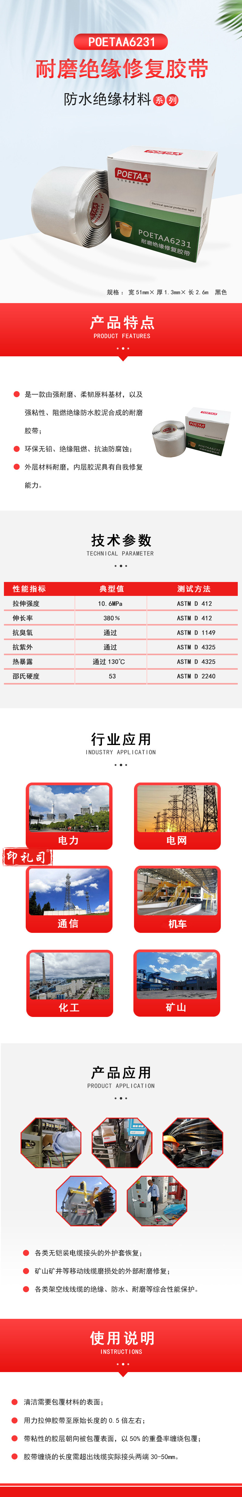 颇尔特POETAA 耐磨绝缘修复胶带,POETAA6231 黑色,51mm*1.3mm*2.6m(单位:卷)