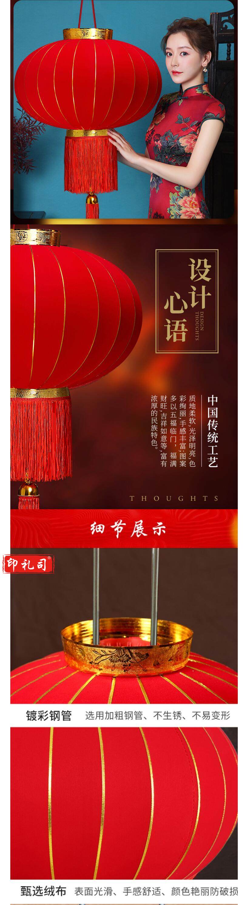 春节灯笼 新年装饰 春节装饰 绒布大红灯笼 1.2米