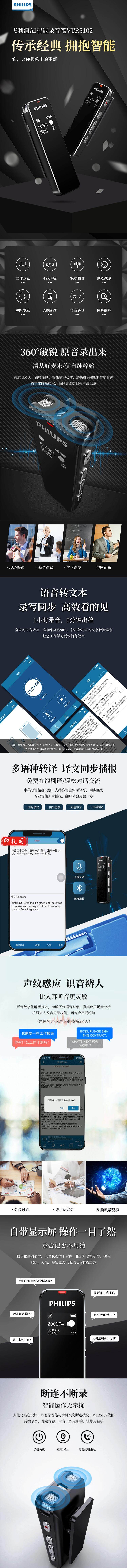 飞利浦(PHILIPS)VTR5102 8G 会议录音笔 终身免费语音转文本 智能APP 声纹感应 录写同步