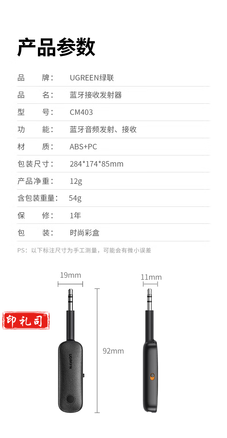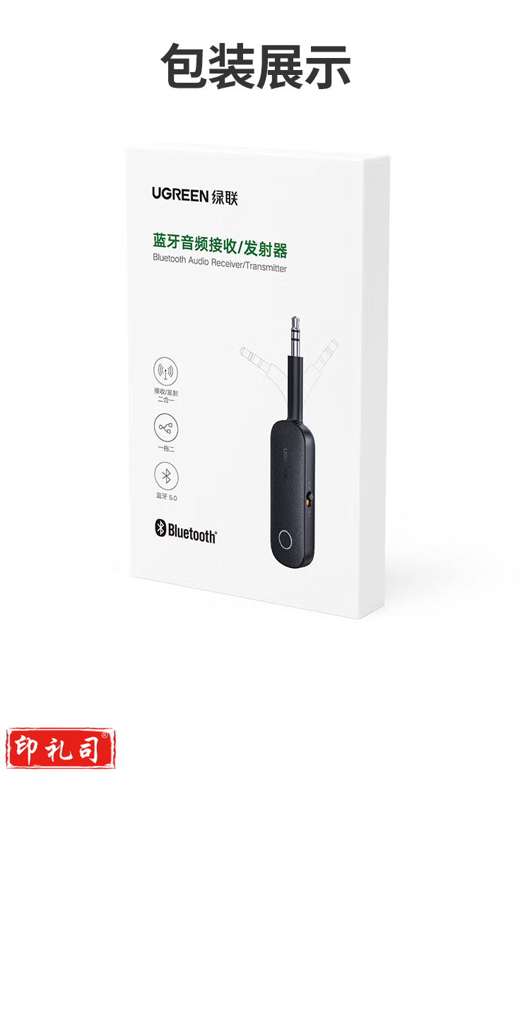 绿联 蓝牙接收器发射器5.0版 3.5mm无线音频适配器 CM403