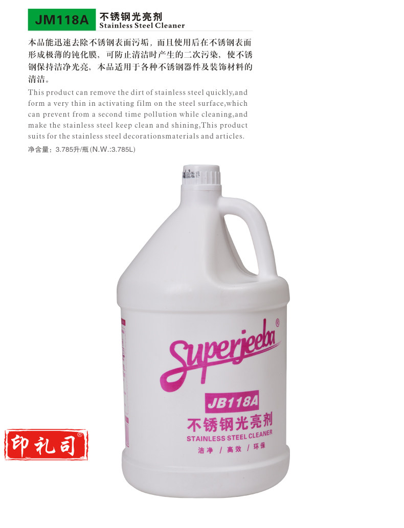 洁霸不锈钢光亮剂 3.78L/桶JB118A 4桶/箱