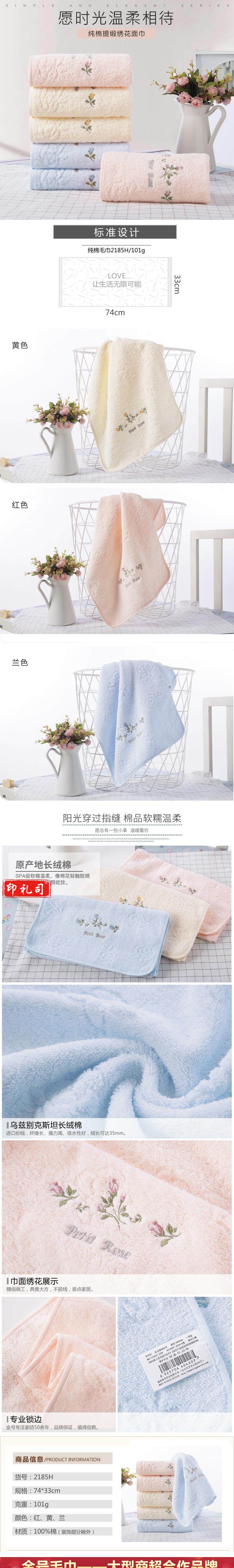金号 2185H 纯棉面巾 74*33cm 110g 单位:条