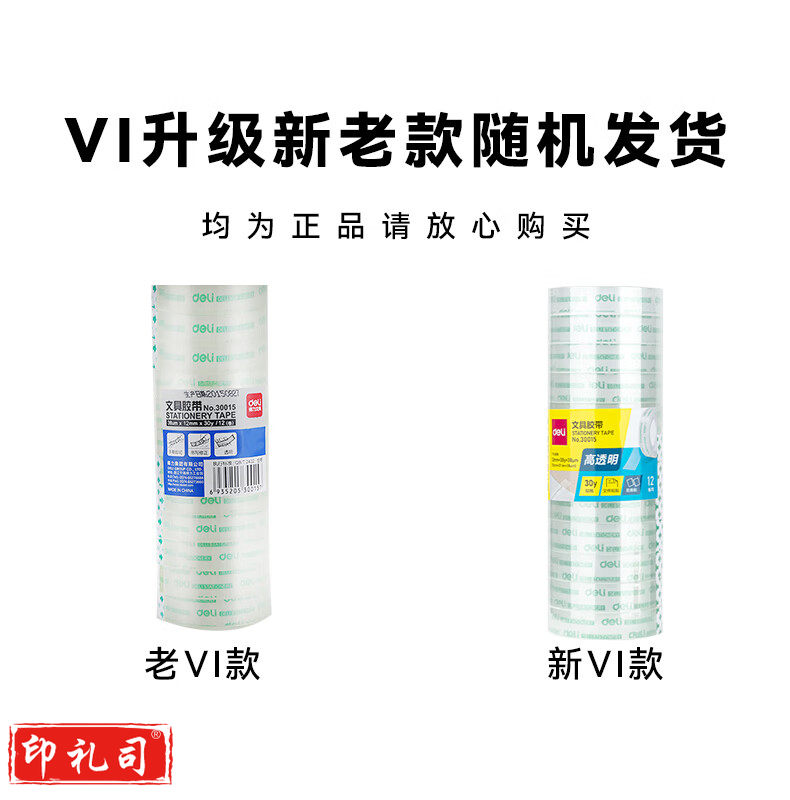 得力(deli)易撕高透学生文具胶带/小胶带 12mm*30y(27.4m/卷)12卷/筒 30015