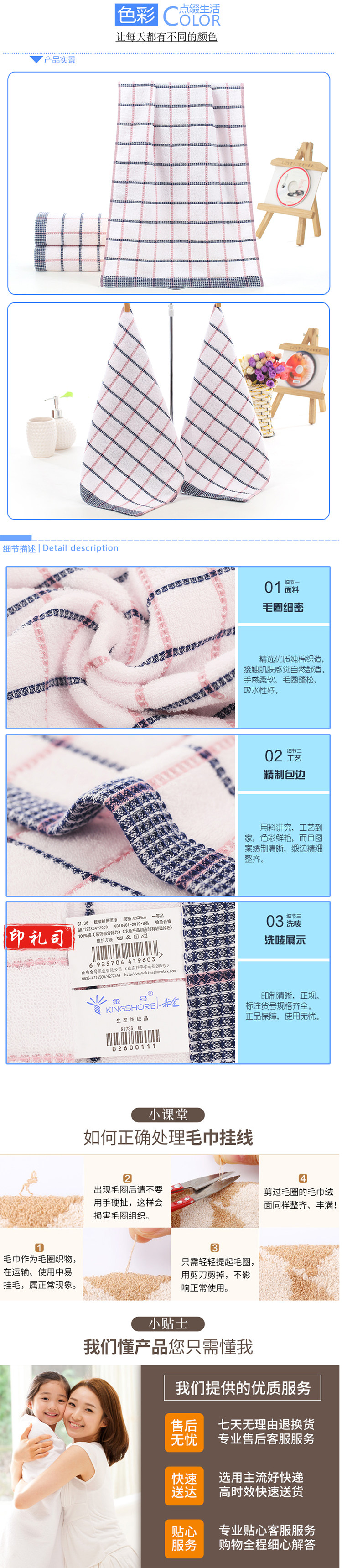 金号 KING SHORE 床品家纺 菱形块G1745蓝棕纯棉毛巾