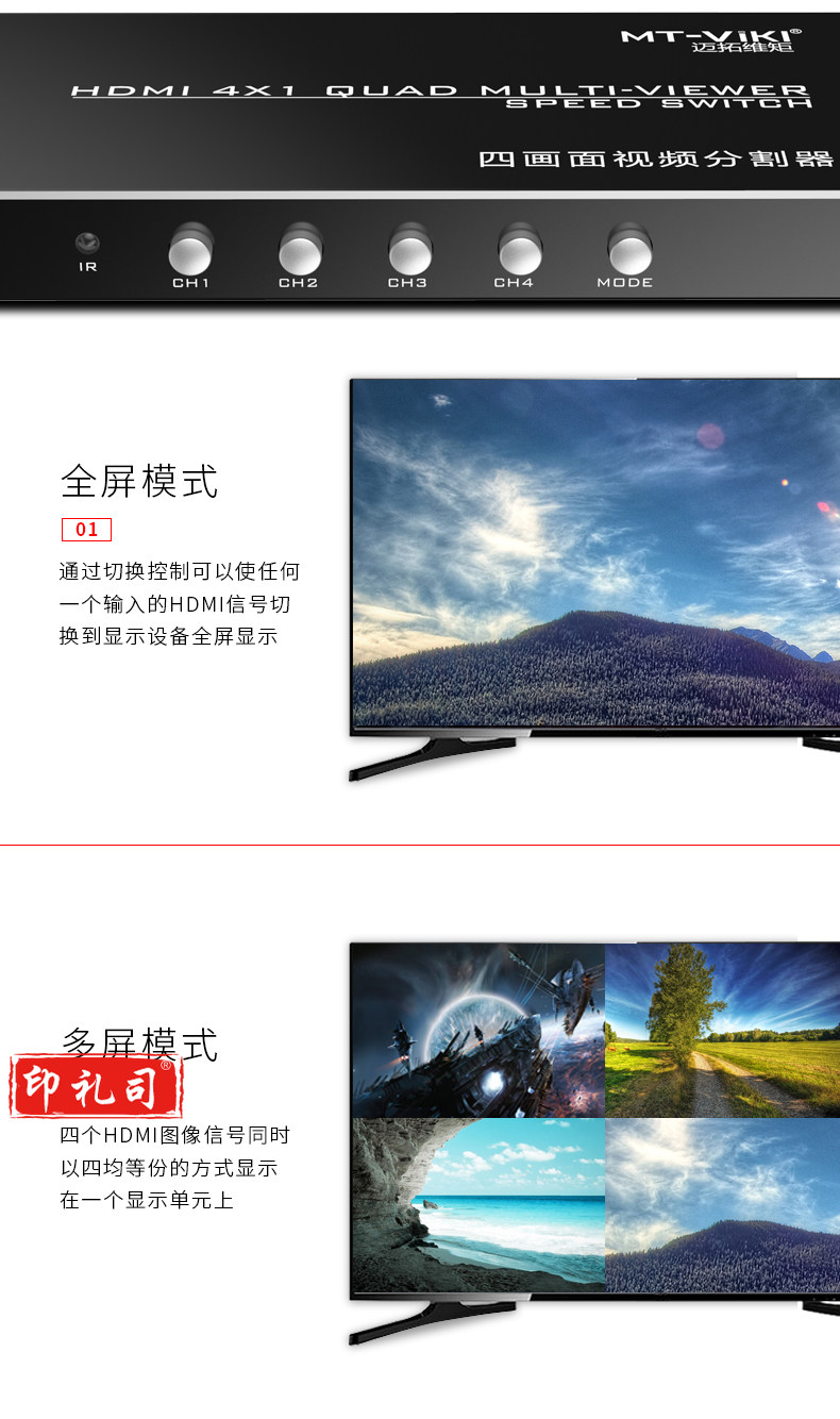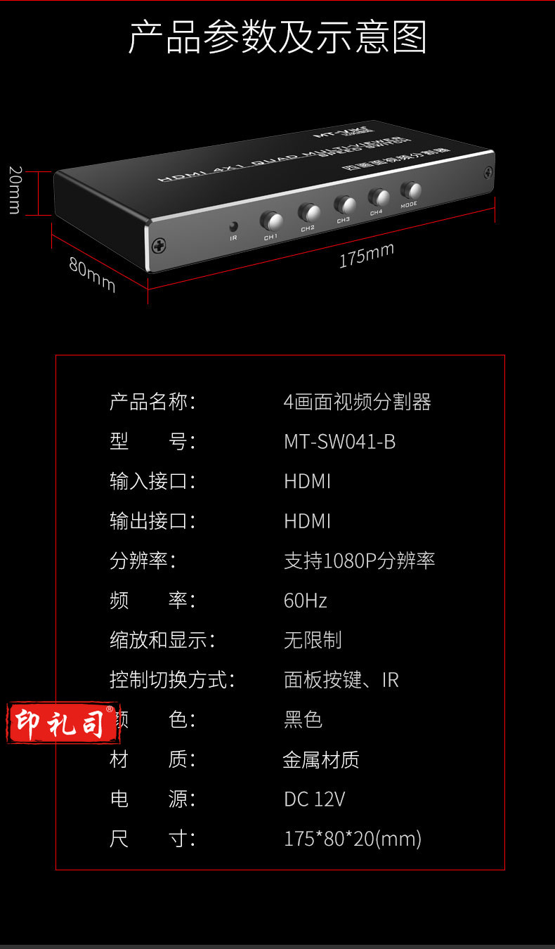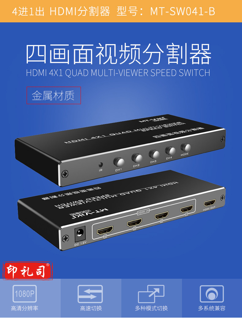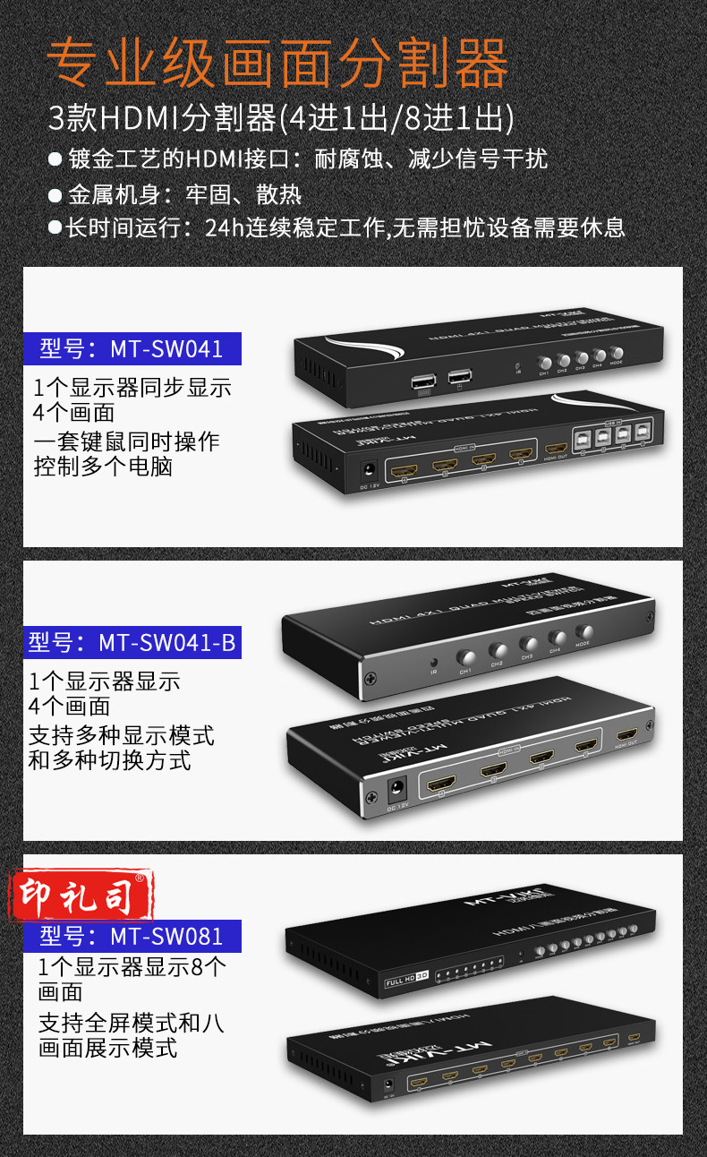 迈拓维矩 HDMI分割器四八画面合成器4进1出分屏器游戏视频电脑监控监视4口同步拼接器4个屏幕拼成大屏