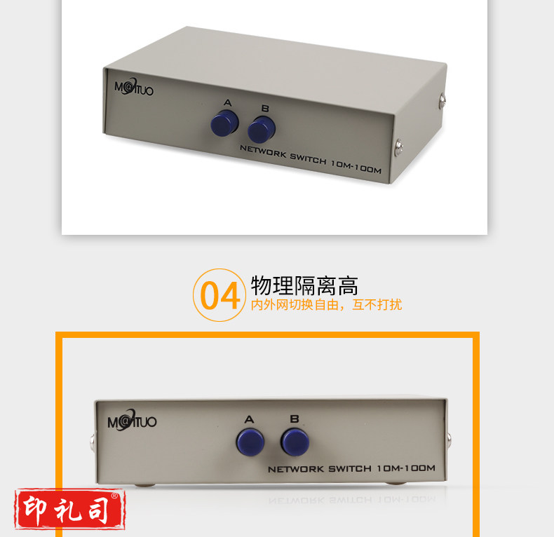 迈拓维矩MT-RJ45-2 网络切换器二进一出内外网线共享器免插拔2进1出