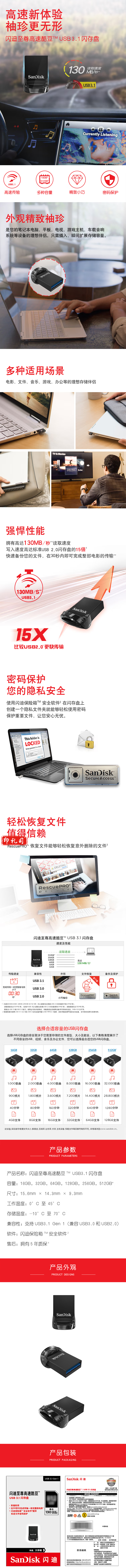 闪迪(SanDisk)64GB USB3.1 U盘 CZ430