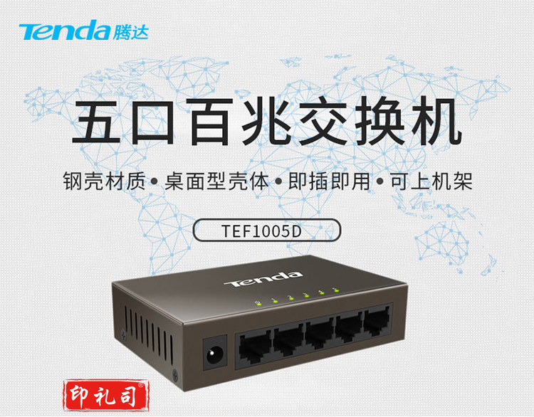 腾达(Tenda)TEF1005D 5口百兆铁壳网络交换机 4口监控工程 家用宿舍专用分线器