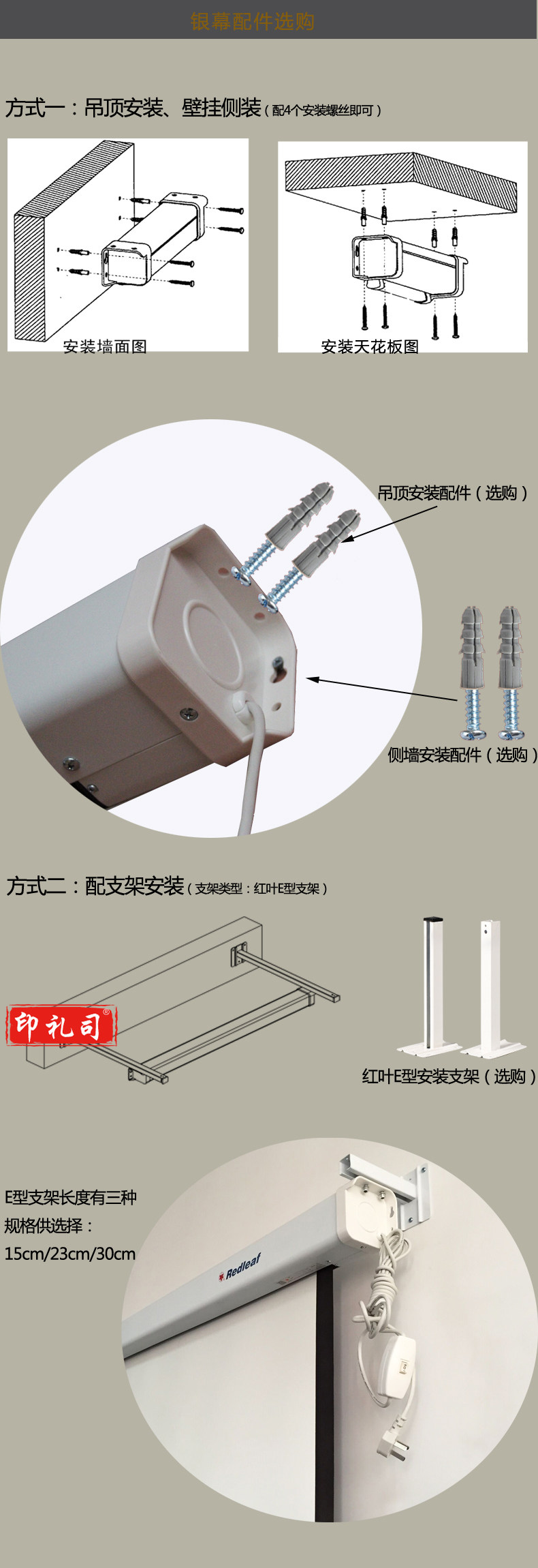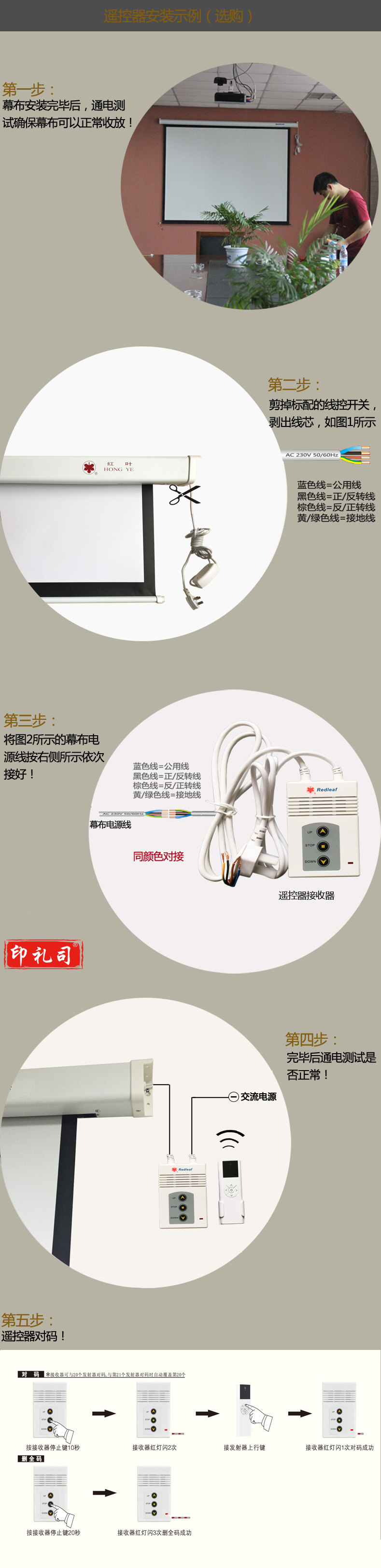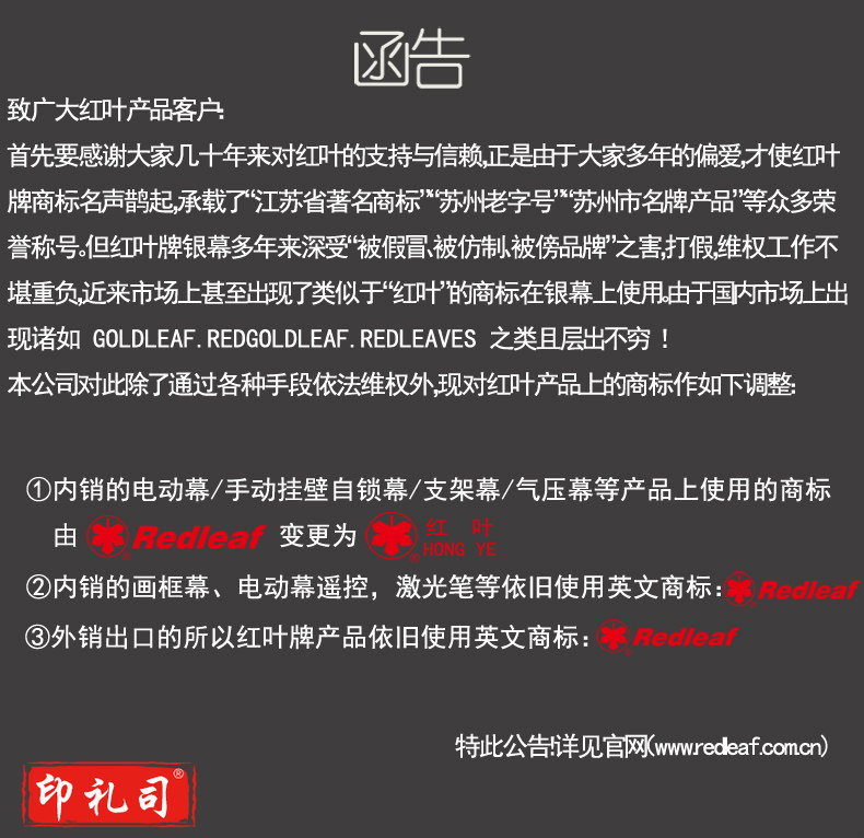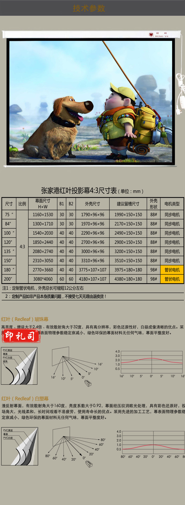 红叶(HONGYE)电动投影幕布135寸4:3白塑幕玻珠幕白玻纤高清幕布 2.74*2.08