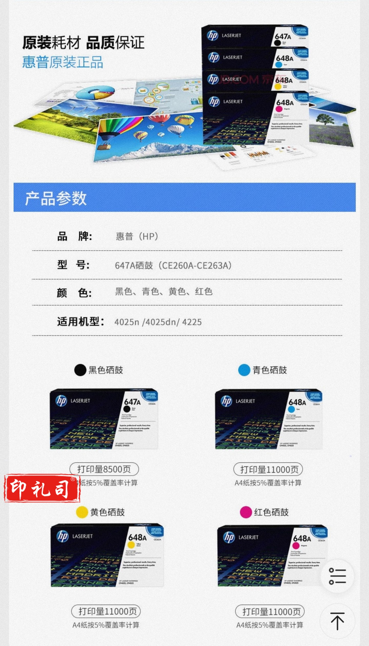 惠普(HP) 品红色 CE263A 648A 适用m4025dn m4025n (约11000页)