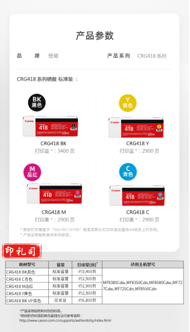 佳能(Canon)CRG-418 C 青色硒鼓(适用于iC MF8380Cdw/iC MF8350Cdn/iC MF8580Cdw/iC MF727Cdw)