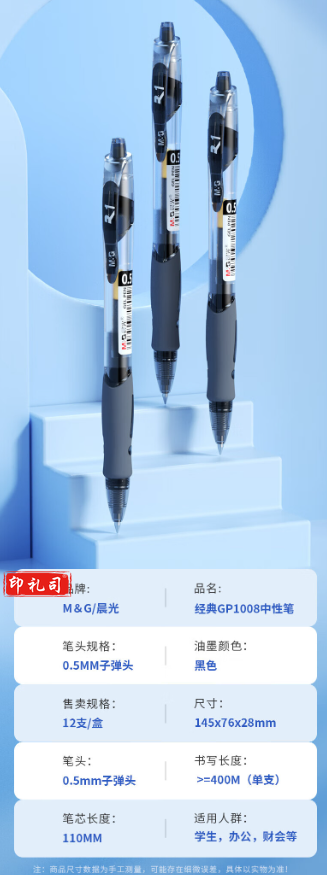 晨光(M&G)按动中性笔 GP-1008/0.5mm (墨蓝色) 12支/盒