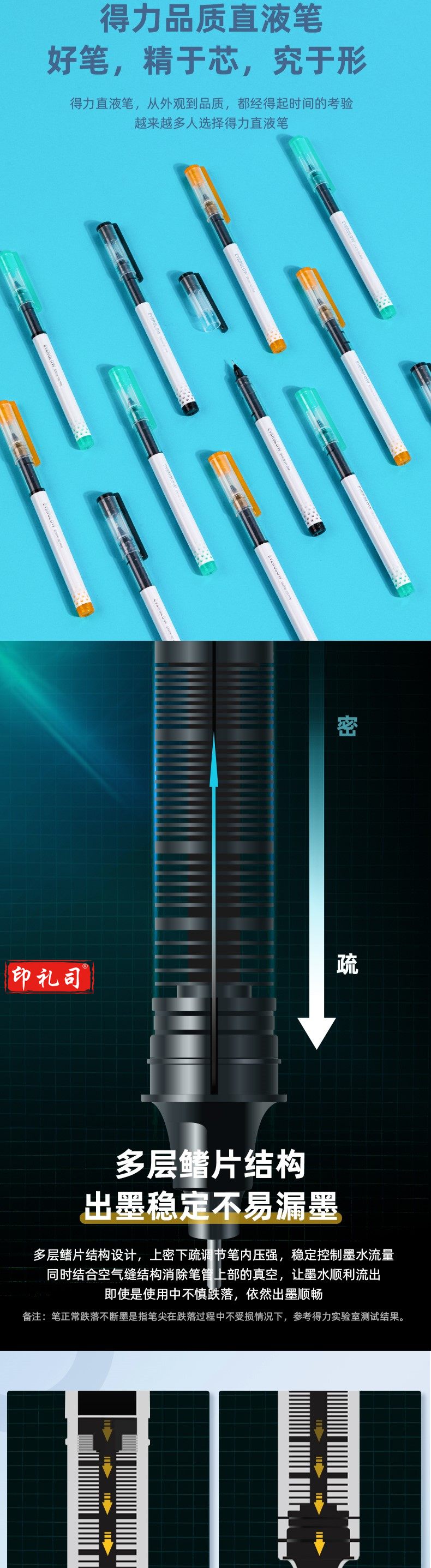 得力S866直液式走珠笔0.5mm全针管(黑)(支)