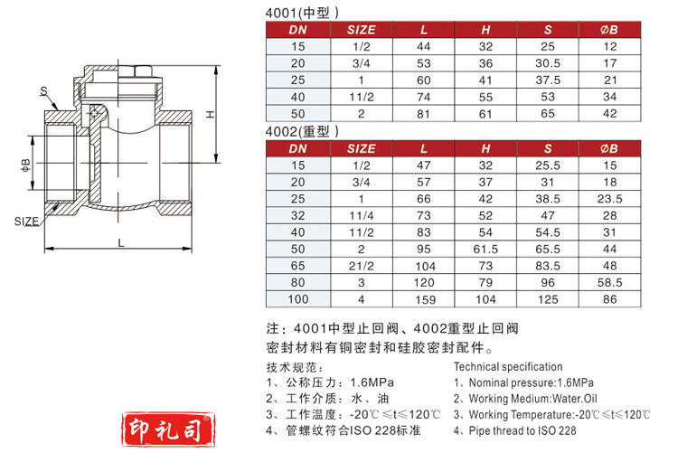 皇冠 DN20铜阀门4002 铜锻压止回阀