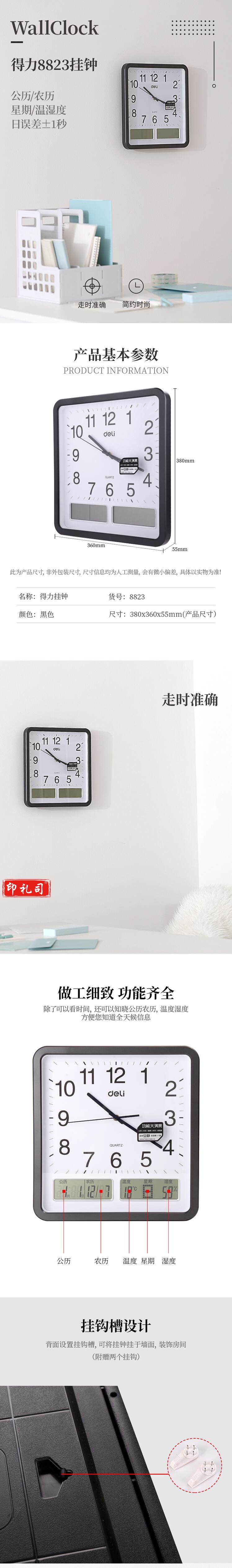 得力(deli) 8823万年历温湿度显示创意时钟 客厅卧室低噪音挂钟