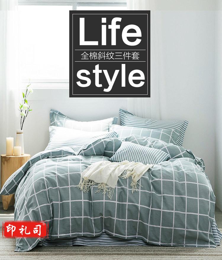 南极人NanJiren 三件套 1.2米床素雅格调 全棉三件套 宿舍单人被套床单枕套 150*200cm
